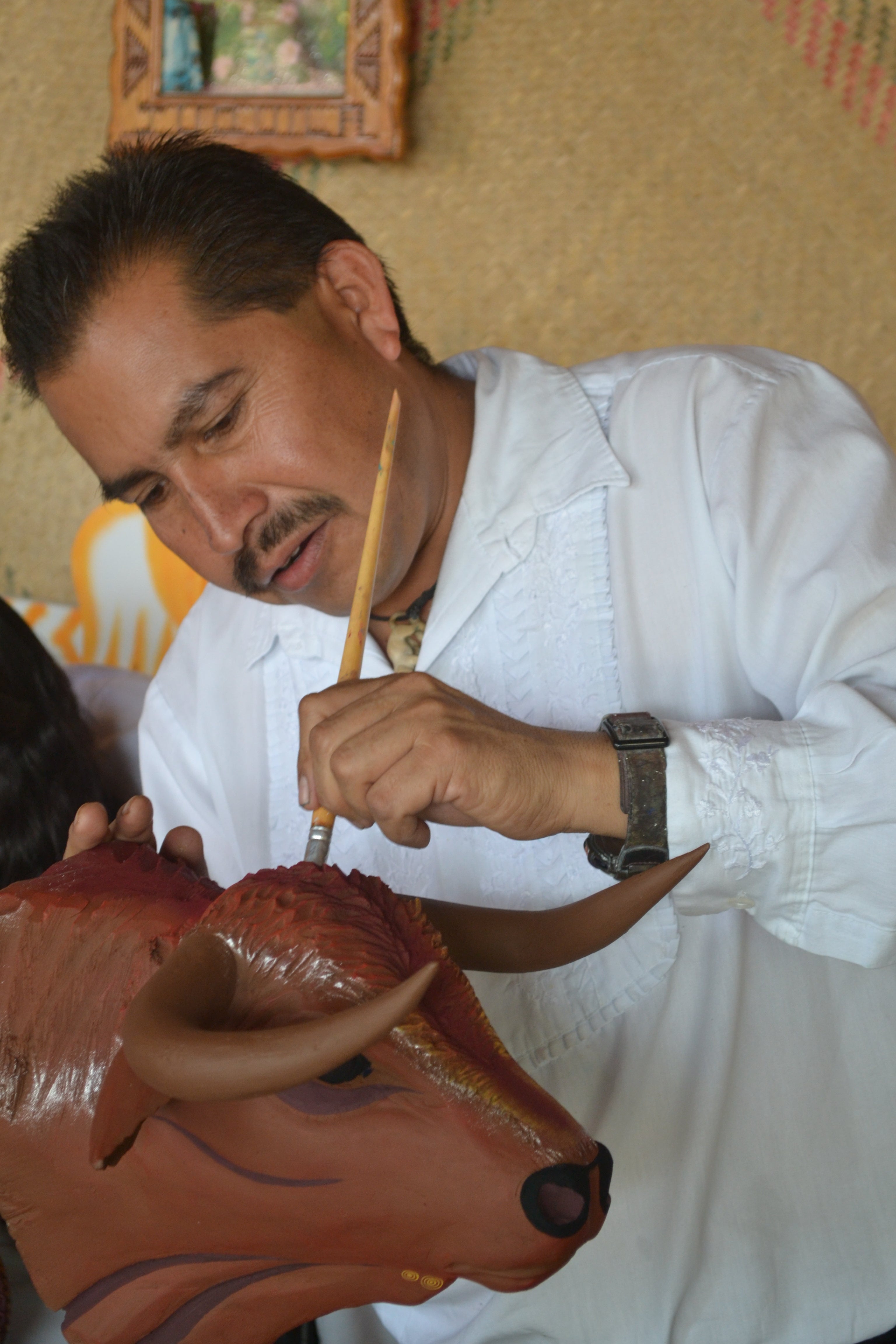 Things are changing in Mexico. New infrastructure, cellular technology and computers are making villages once virtually cut off from the outside world much easier to connect with. This change can also be seen in the Folk Art, simple almost primitive carvings and paintings are being replaced by more intricate designs that incorporate animals and ideals that may not belong to the region. New colors and materials adapted from the outside world enable Indigenous and Mexican folk artists alike an exciting new way of expressing how their ancient traditions and beliefs fit into today’s modern world.