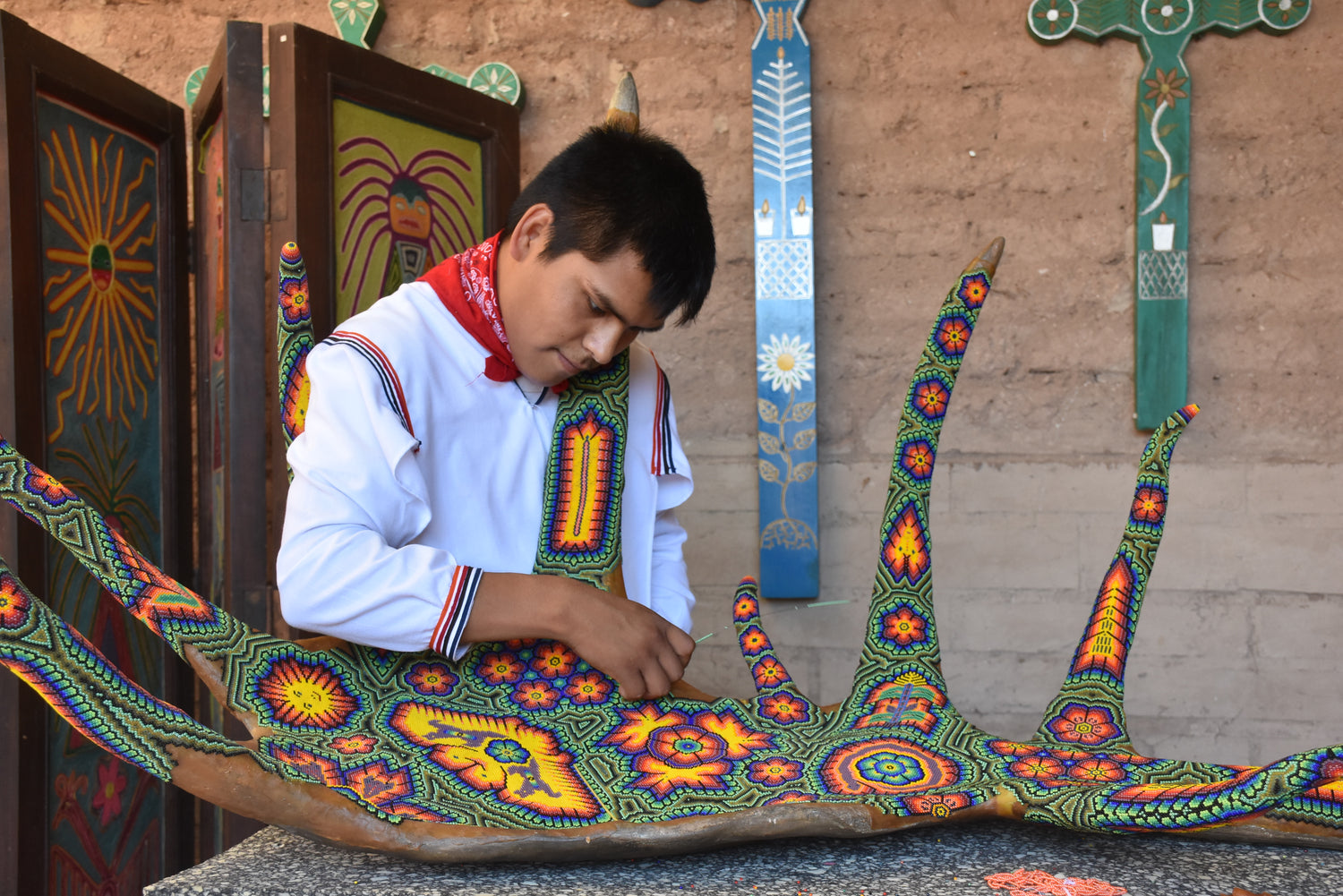 Huichol Bead Art Mexican Folk Art, Bull Skull By Mayola Villa Lopez PP7830