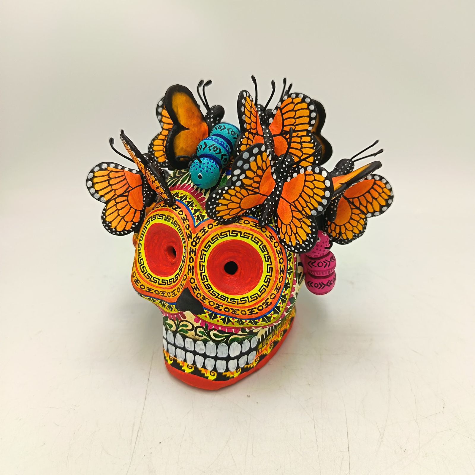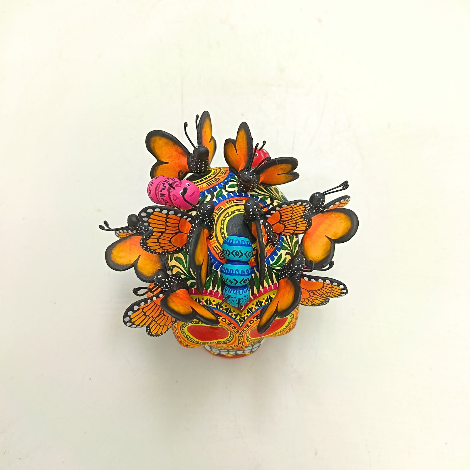 Day Of The Dead Ceramics Butterflys Human Skull By Alfonso Castillo PP8830
