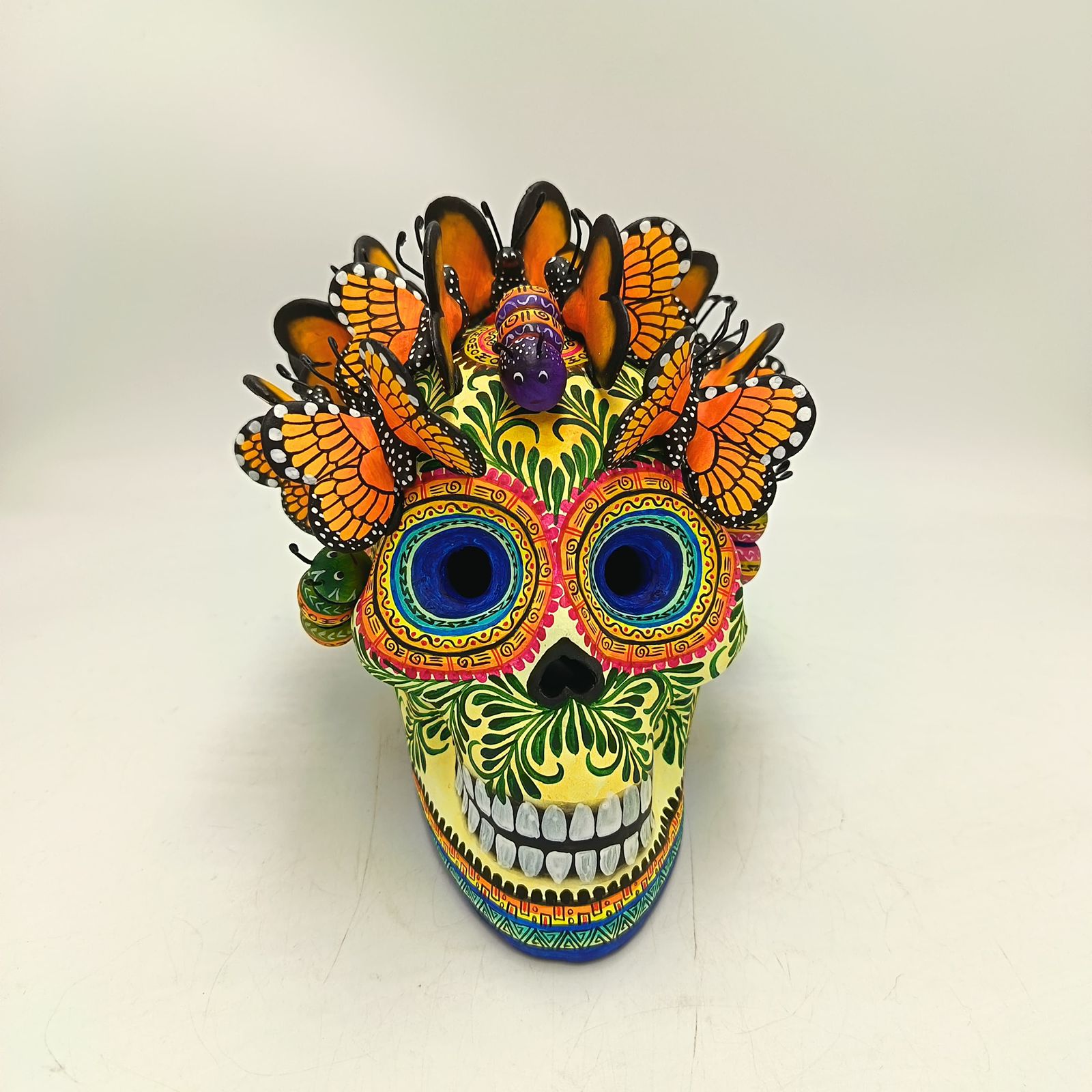 Day Of The Dead Ceramics Butterflys Human Skull By Alfonso Castillo PP8835