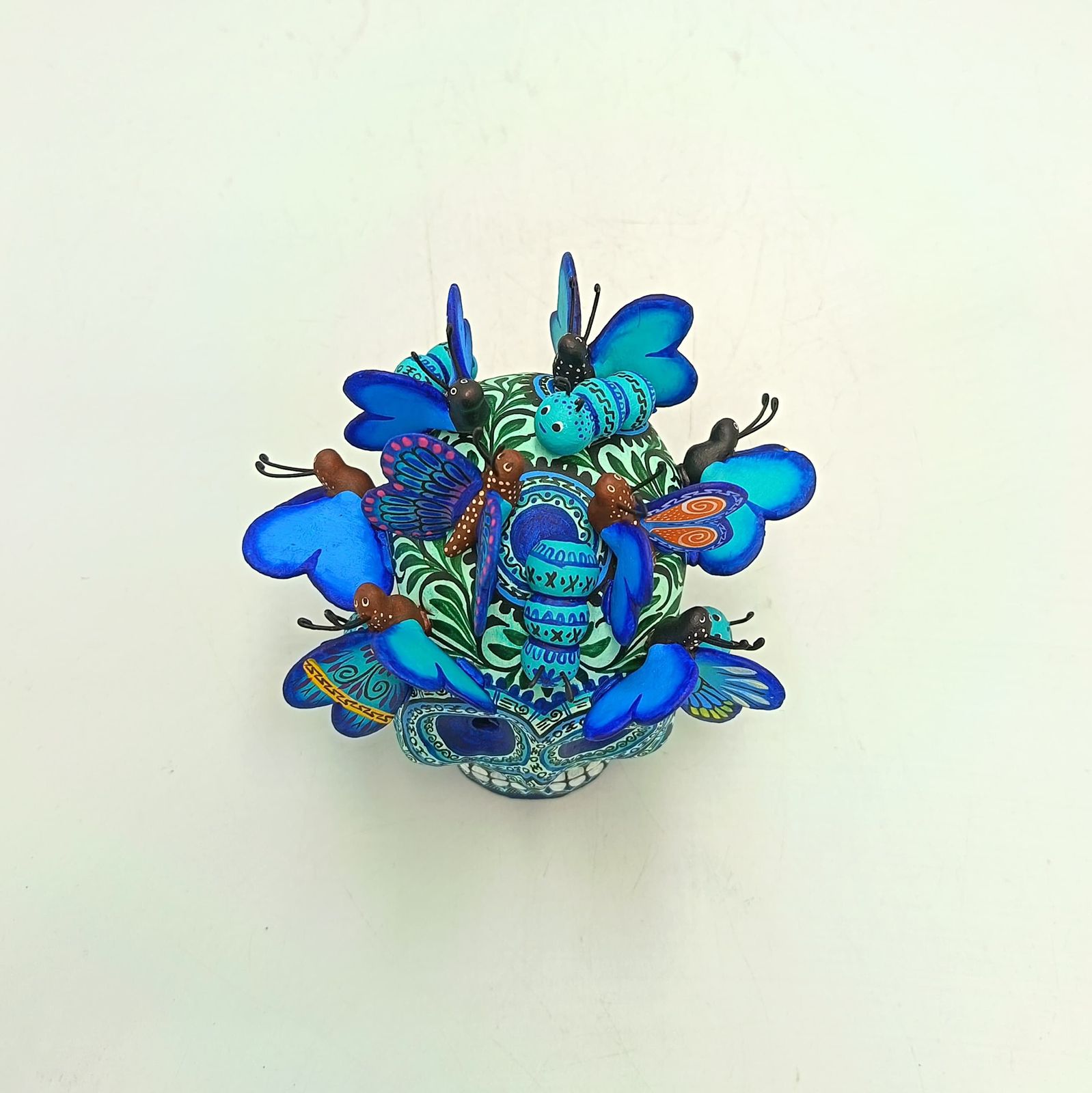 Day Of The Dead Ceramics Butterflys Human Skull By Alfonso Castillo PP8836