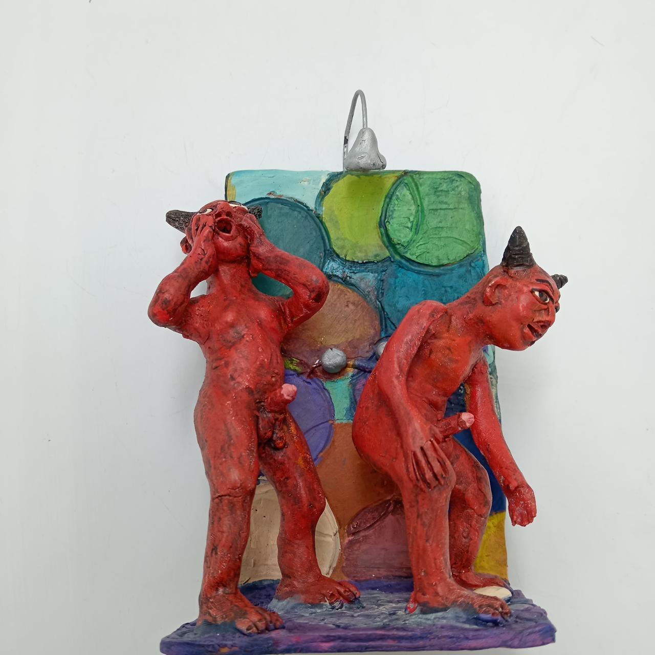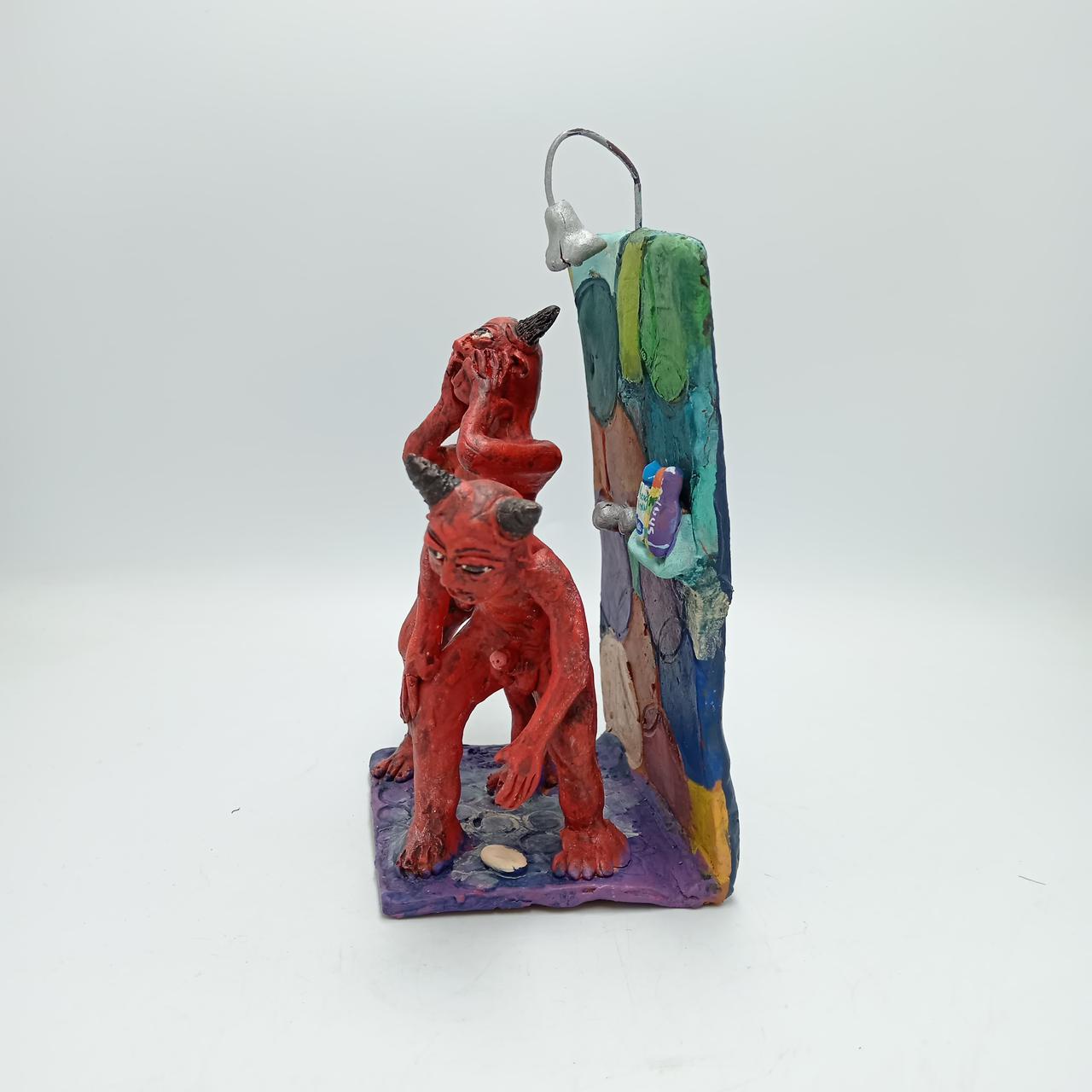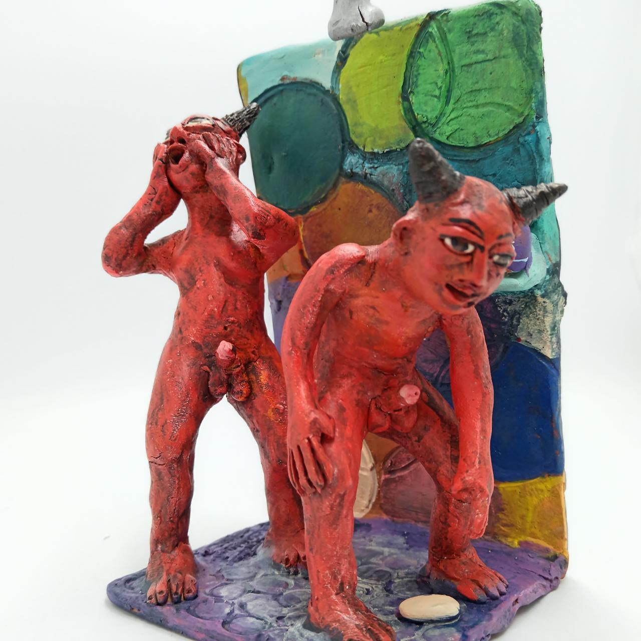 Combinding his mother's folk art tradition with his own unique style, Demetrio creates fantastic handcrafted muñecas (human figures) and plaques with personal interpretations of religious, cultural and family themes.