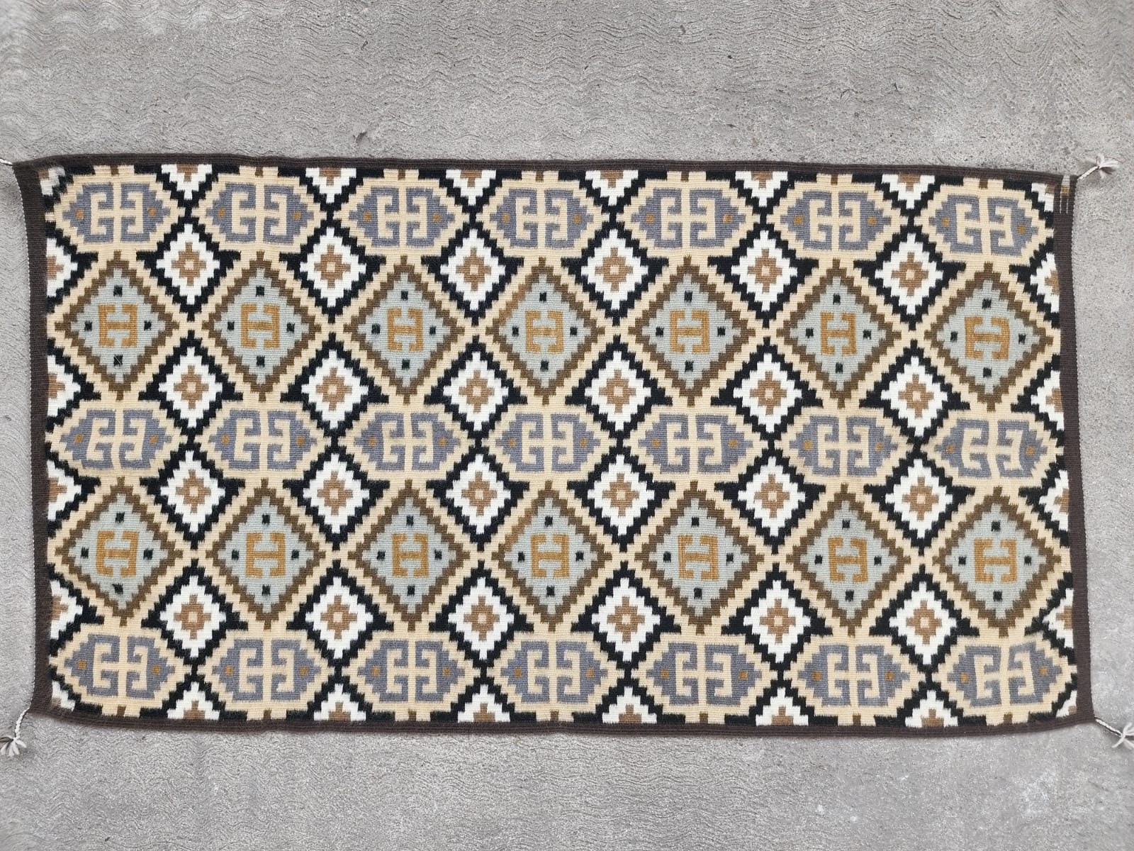 These same techniques are being used in the making of rugs since prehispanic times. At age 12 he began to weave larger pieces with greater degree of difficulty, they were no longer just valances, nor working with traditional technique, but now he weaves geometric figures of all kinds, mainly diamonds.