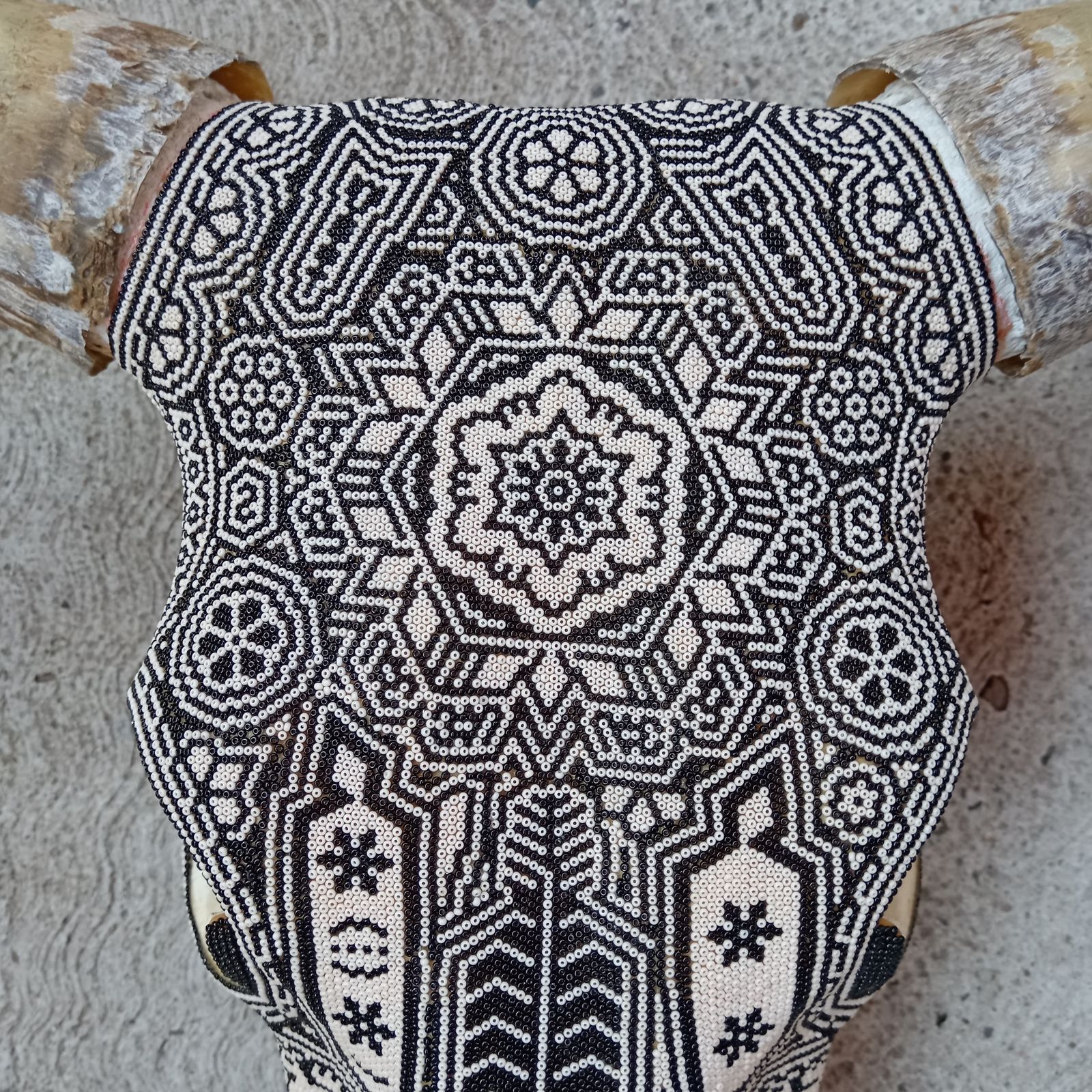 Huichol Bead Art Mexican Folk Art, Bull Skull By Mayola Villa Lopez PP8351