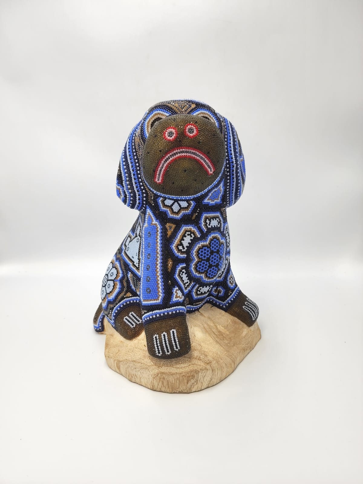 Huichol Beaded Mexican Folk Art Dog By Mayola Villa Lopez PP4492