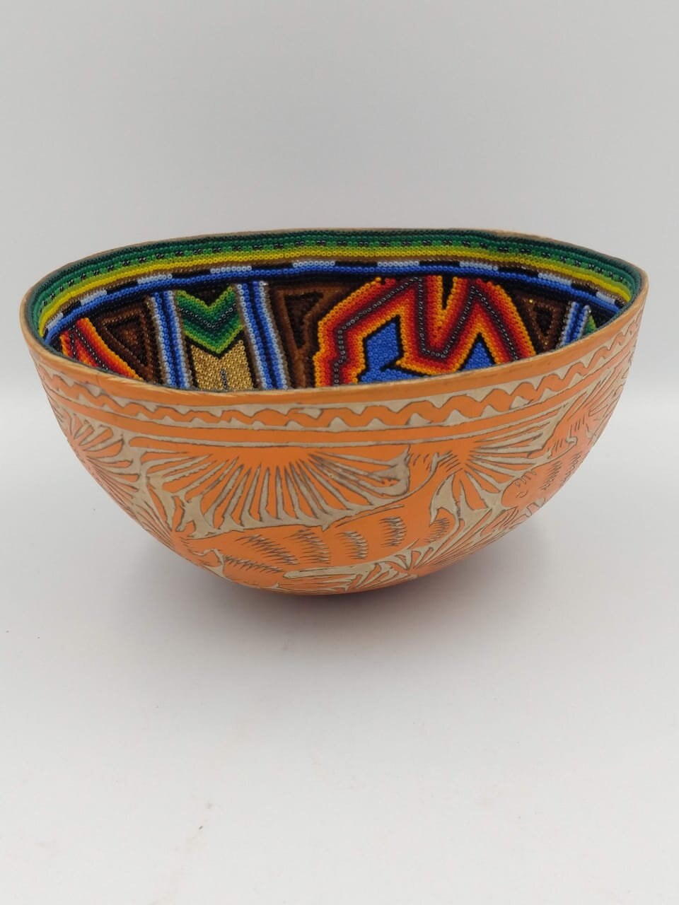 Hand Beaded Mexican Folk Art Bowl With Micro Beads By Mayola Villa Lopez PP3251