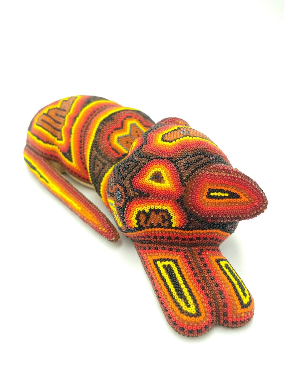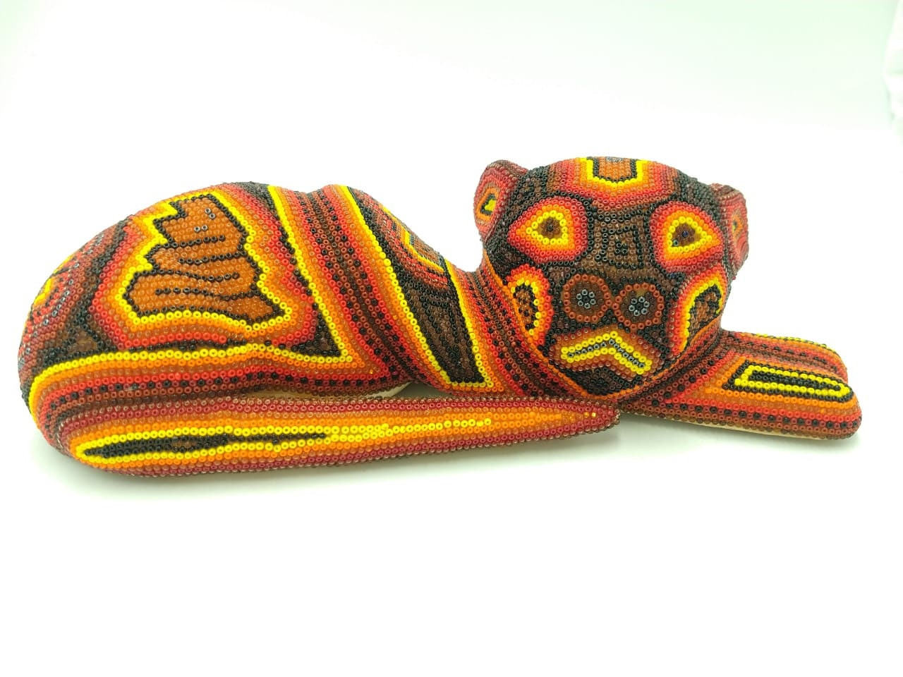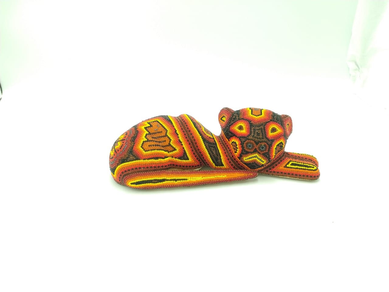 Huichol Hand Beaded Mexican Folk Art Cat By Mayola Villa Lopez PP4033