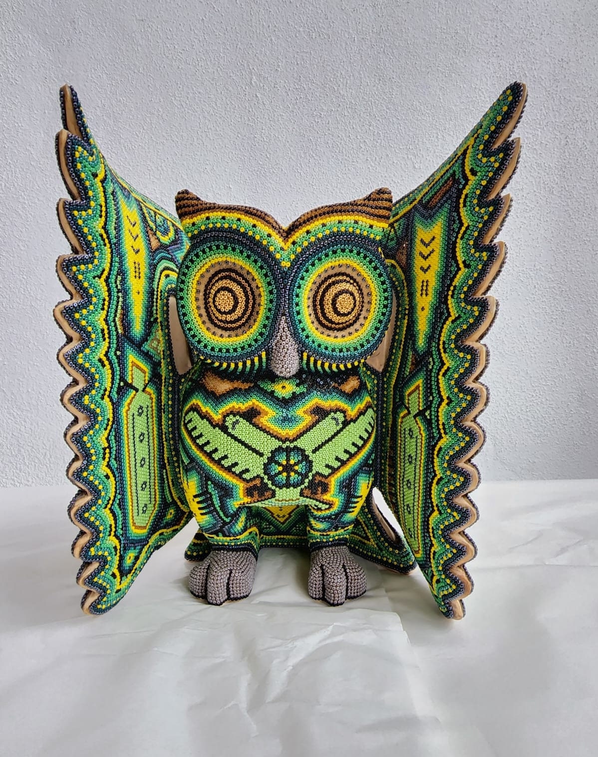 Mexican Folk Art Huichol Beaded Owl by Isandro Villa Lopez PP4141