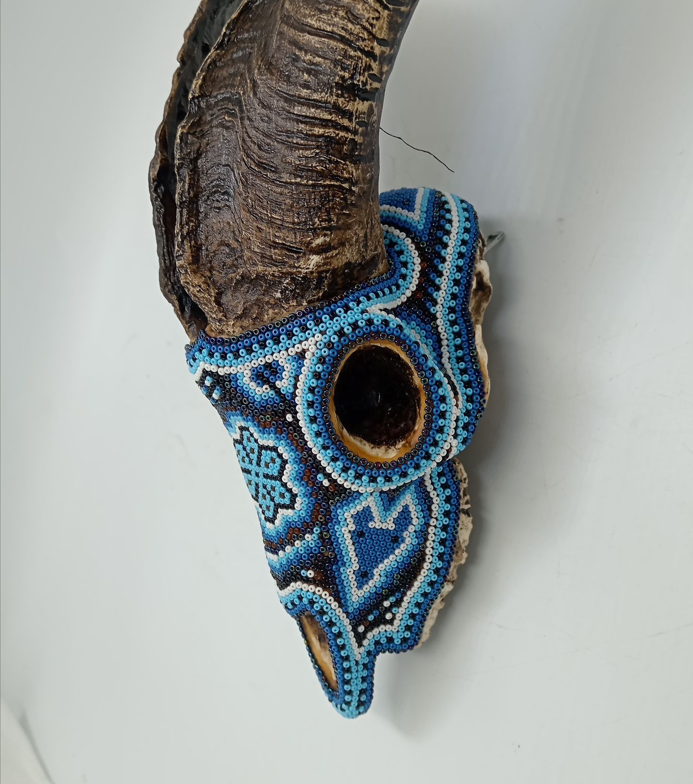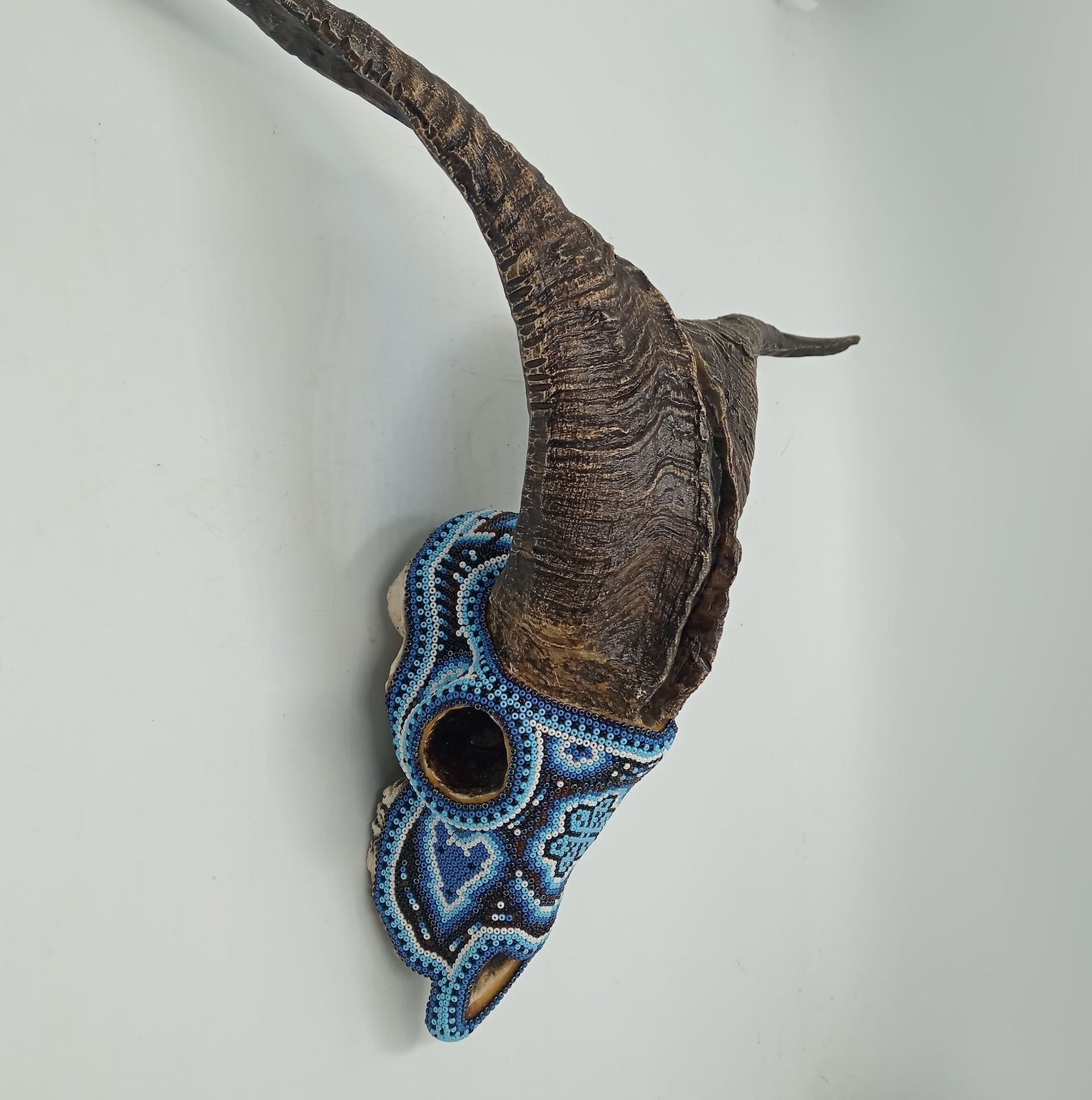 Beaded Huichol Mexican Folk Art Goat Skull By Mayola Villa Lopez PP8646