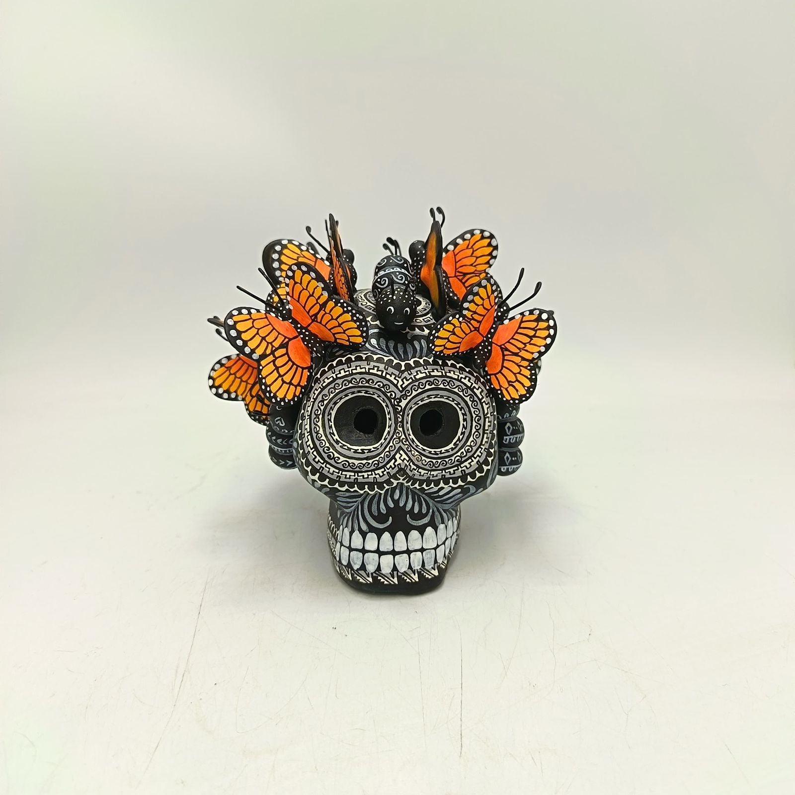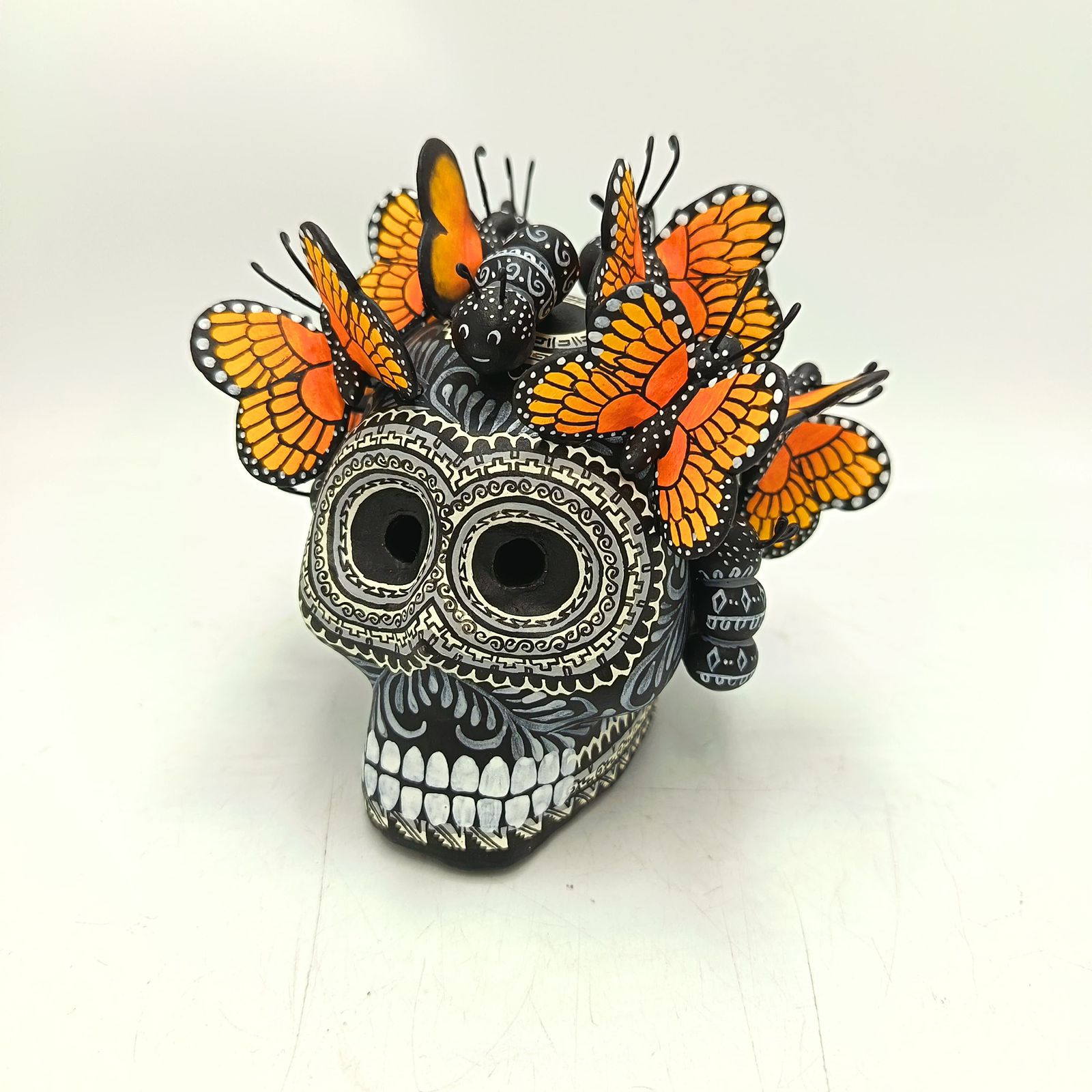 Day Of The Dead Ceramics Butterflys Human Skull By Alfonso Castillo PP8831