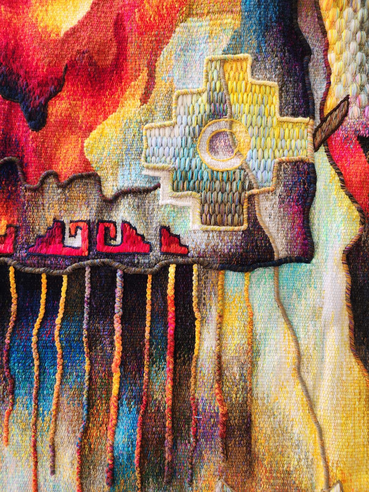 This outstanding tapestry was hand woven on a foot peddle loom with 100% Alpaca fibers by Constantino Laura who has a sensational sense of color. This piece measures 48" x 40"
