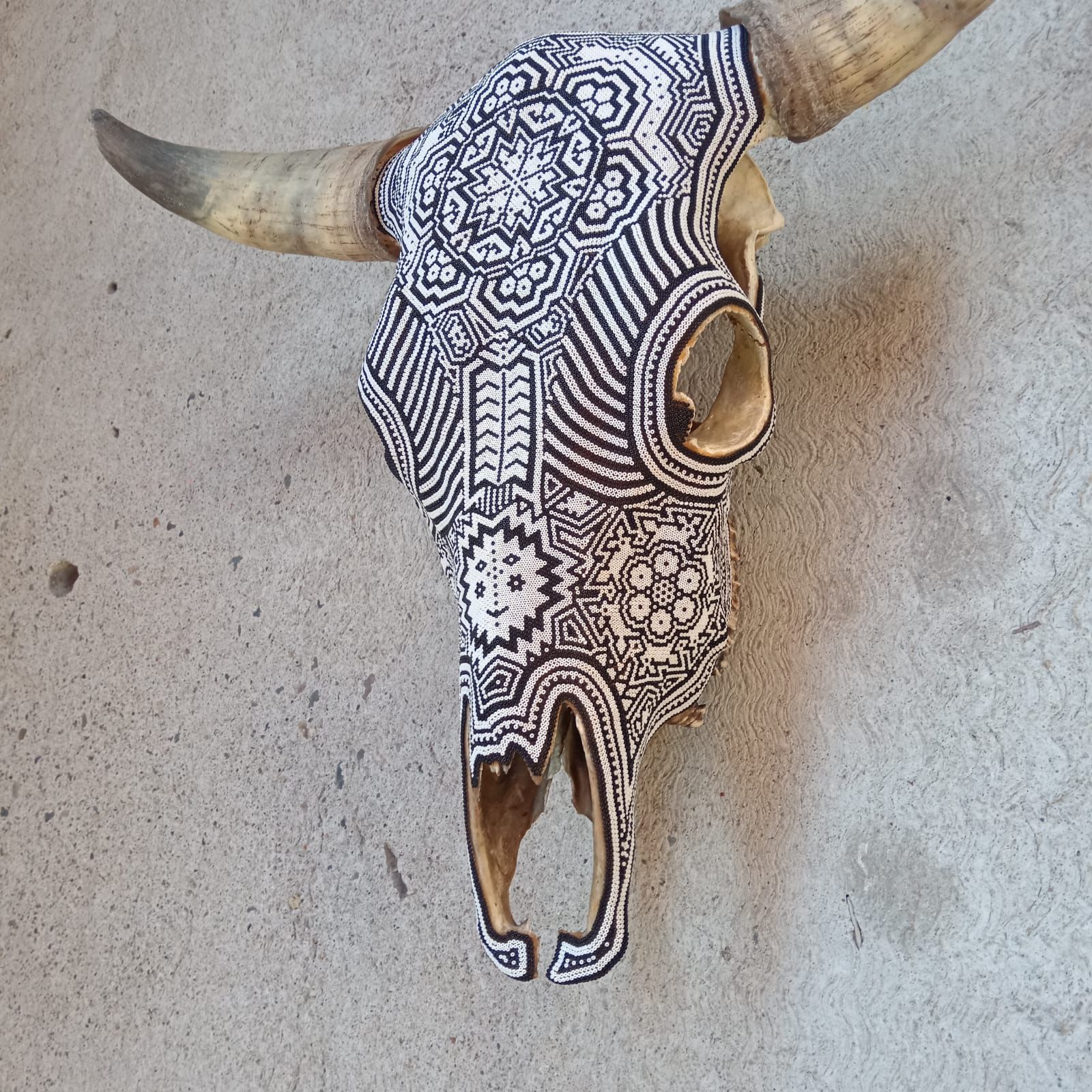 Huichol Bead Art Mexican Folk Art, Bull Skull By Mayola Villa Lopez PP8612 Oaxaca