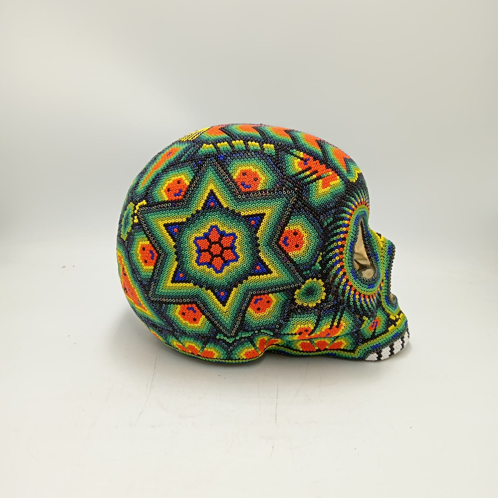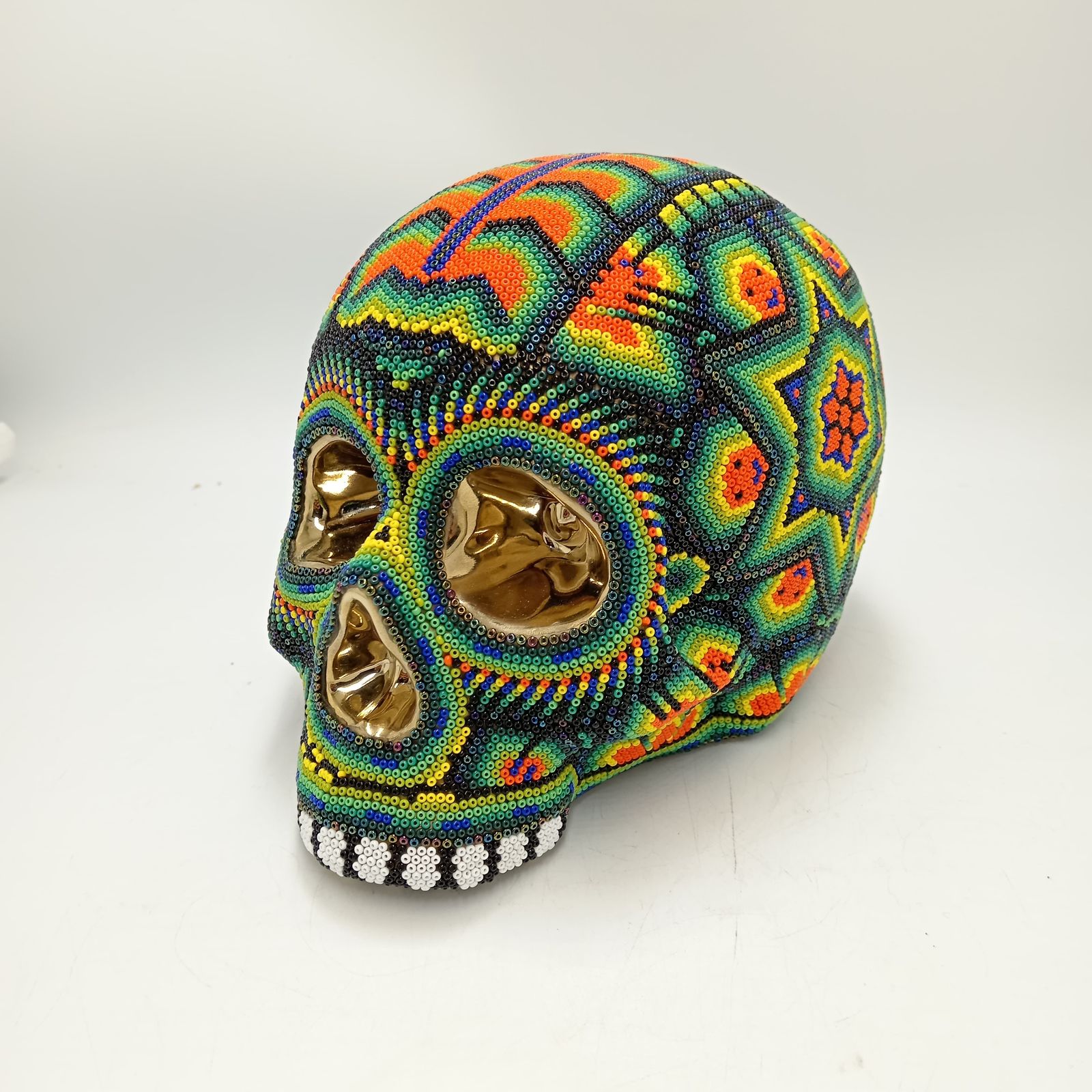 Huichol Hand Beaded Human Skull By Honorio Villa Lopez PP8492