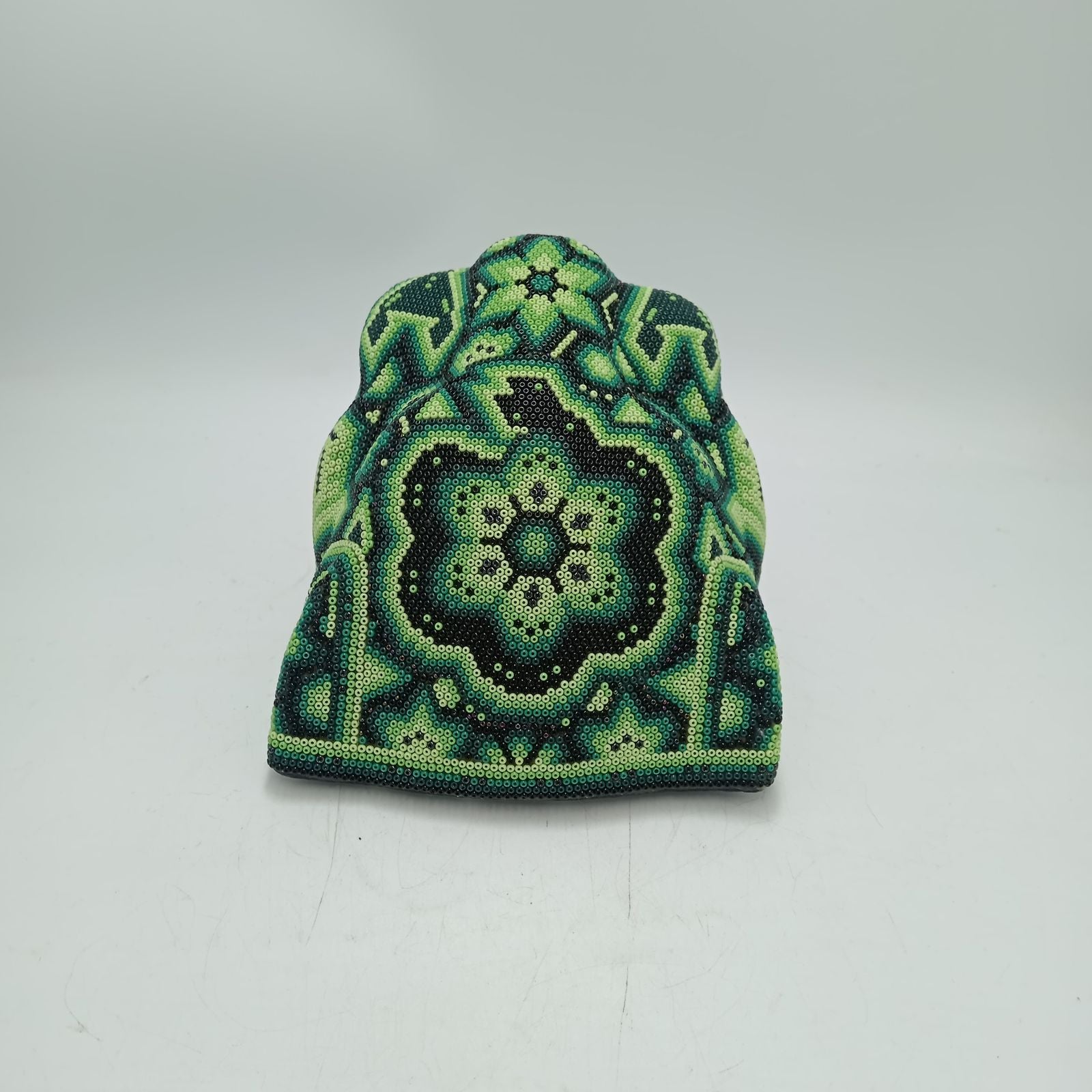 The piece By Isandro Villa Lopez is the grandson of Jacinto Lopez Ramirez, an older Huichol shaman considered to be the grandfather of the commercial bead art. Isandro lives in Agua Zarca the families ranch about 2 hours from San Andres Cohamiata the ancient Ceremonial Center deep in the Sierra Madre Mountains of Western Mexico.