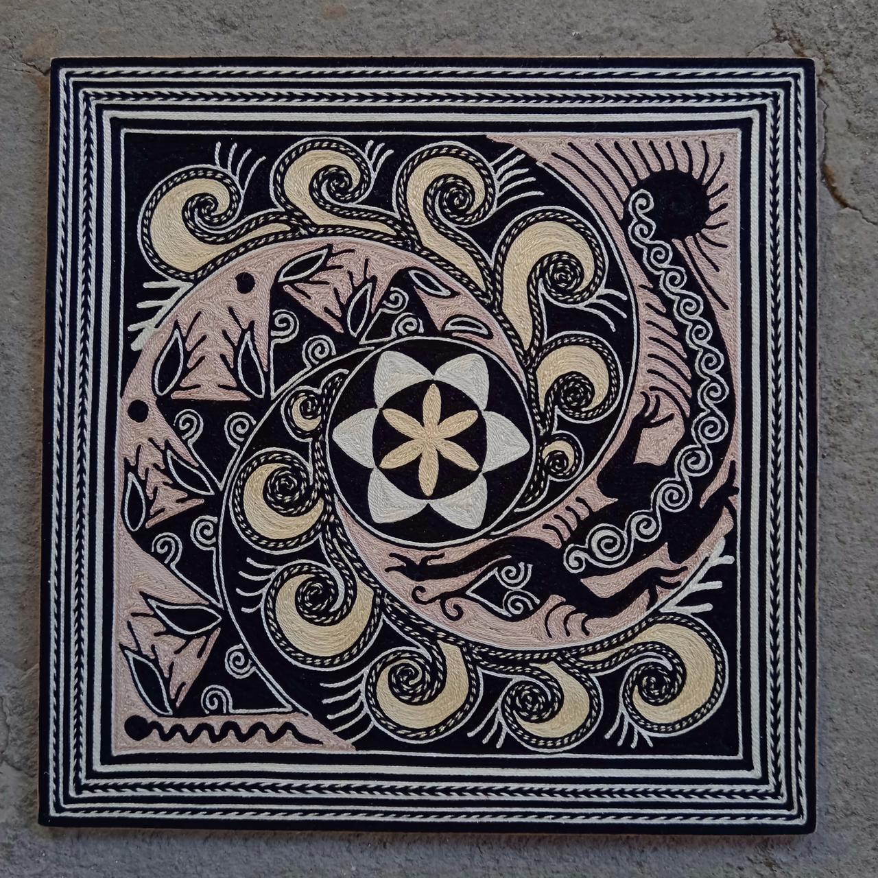 This is an extraordinary Yarn Painting that Alfredo Meraz Reyna did that measures is 12" x 12".
