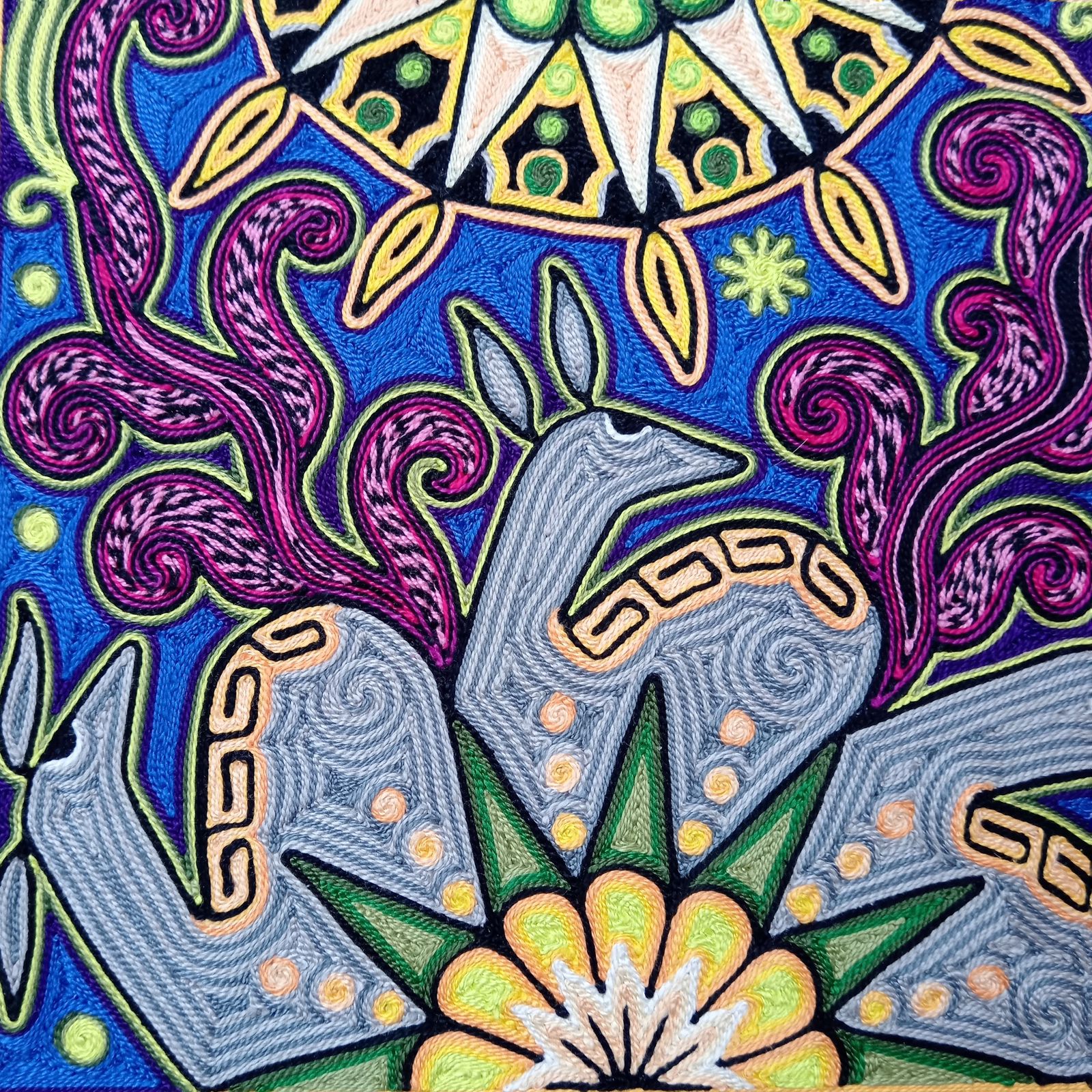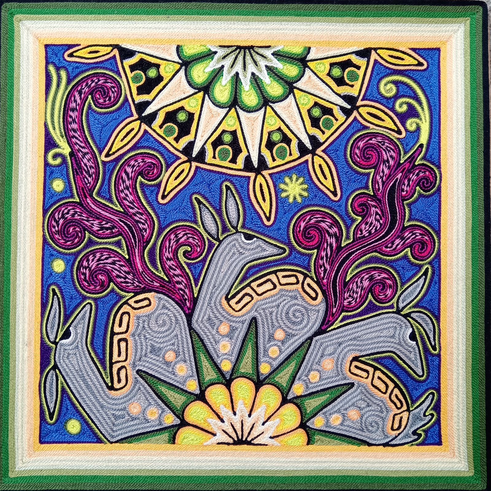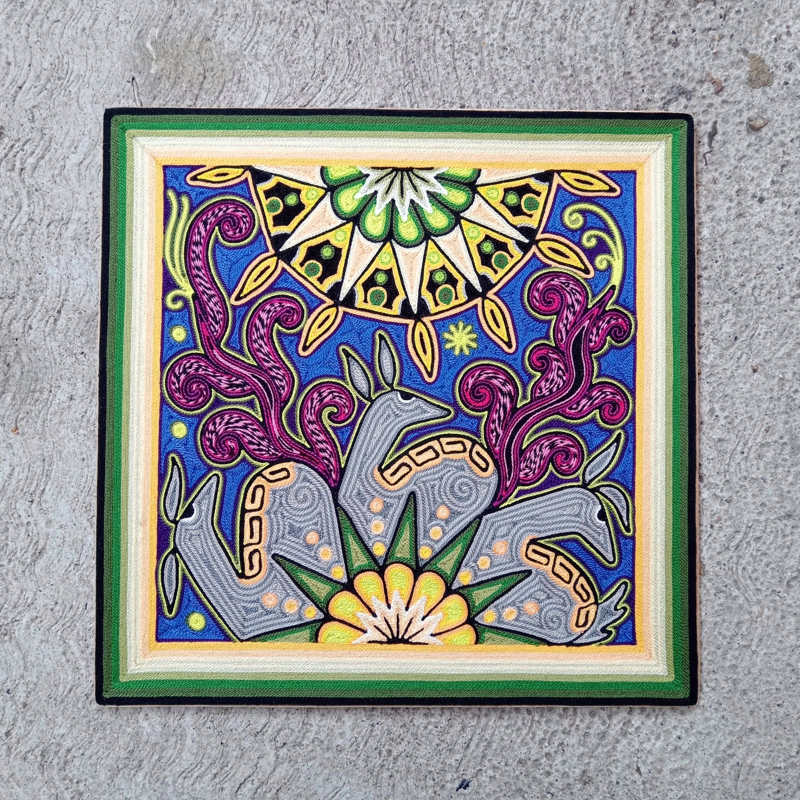 This is an extraordinary Yarn Painting that Alfredo Meraz Reyna did that measures is 12" x 12".