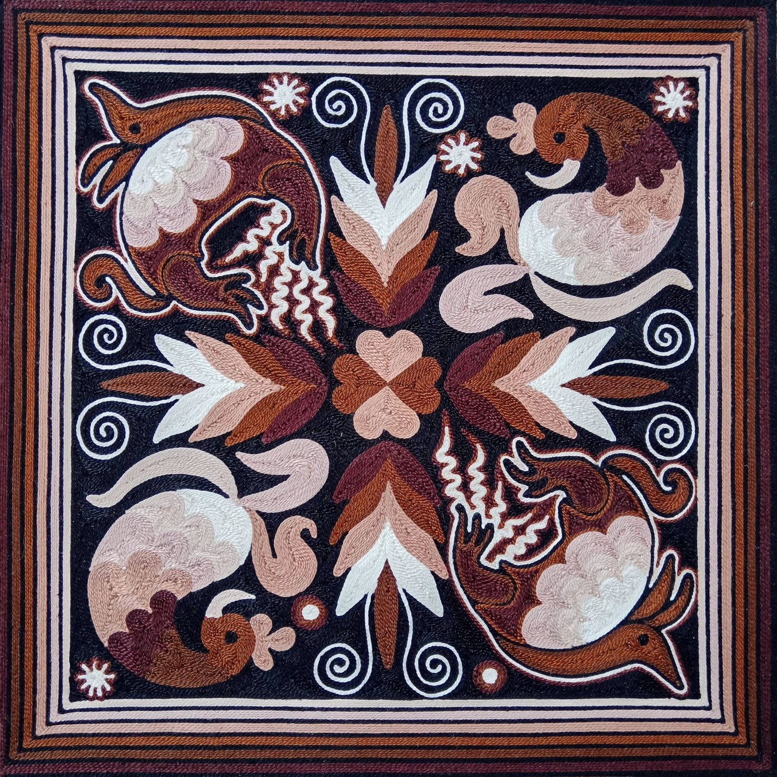 This is an extraordinary Yarn Painting that Alfredo Meraz Reyna did that measures is 12" x 12".