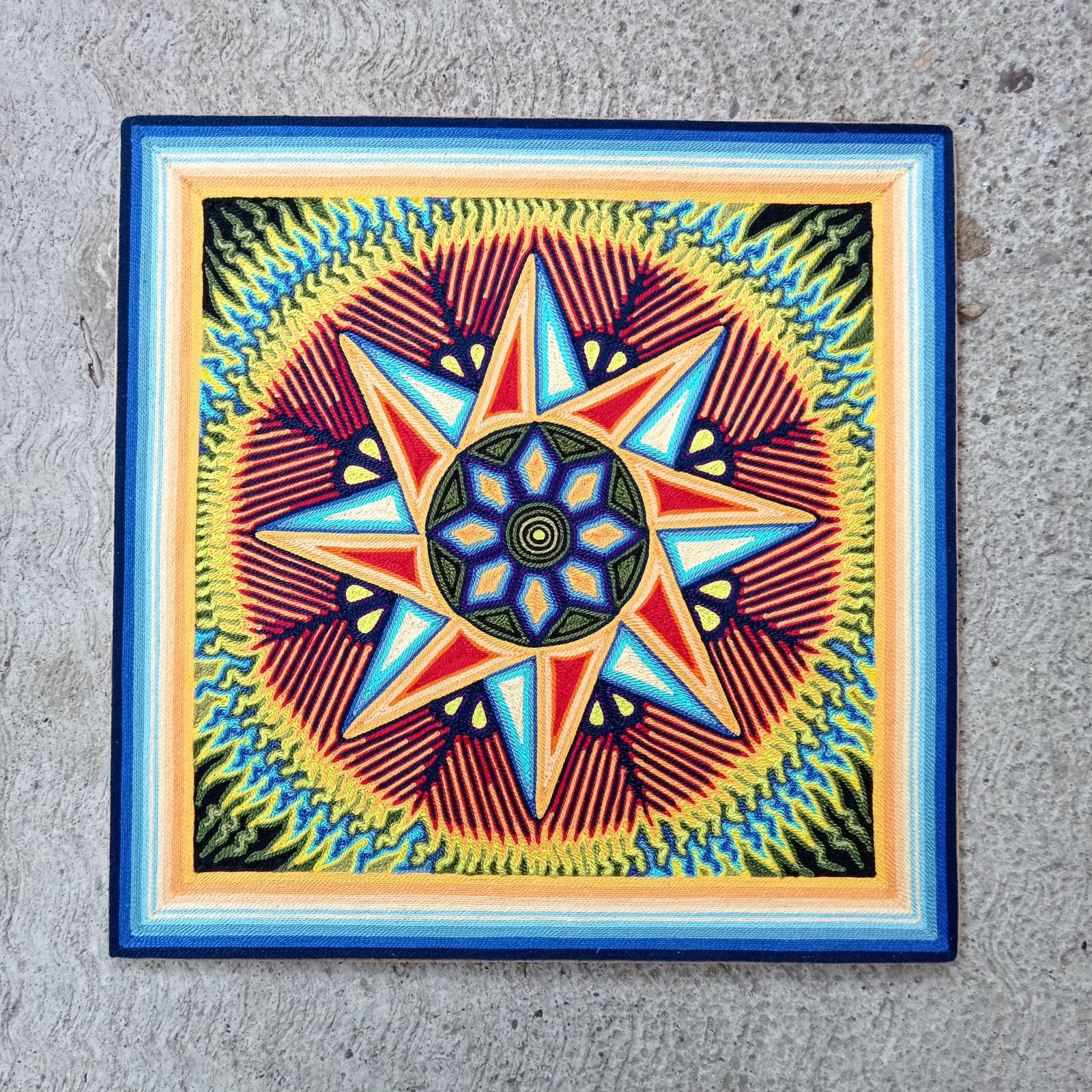 This is an extraordinary Yarn Painting that Alfredo Meraz Reyna did that measures is 12" x 12".