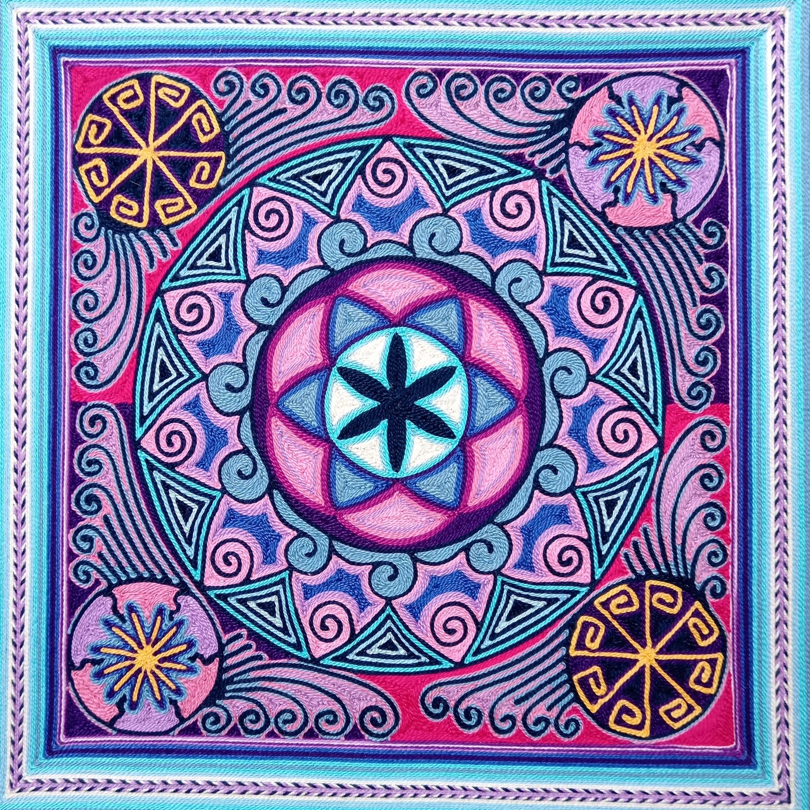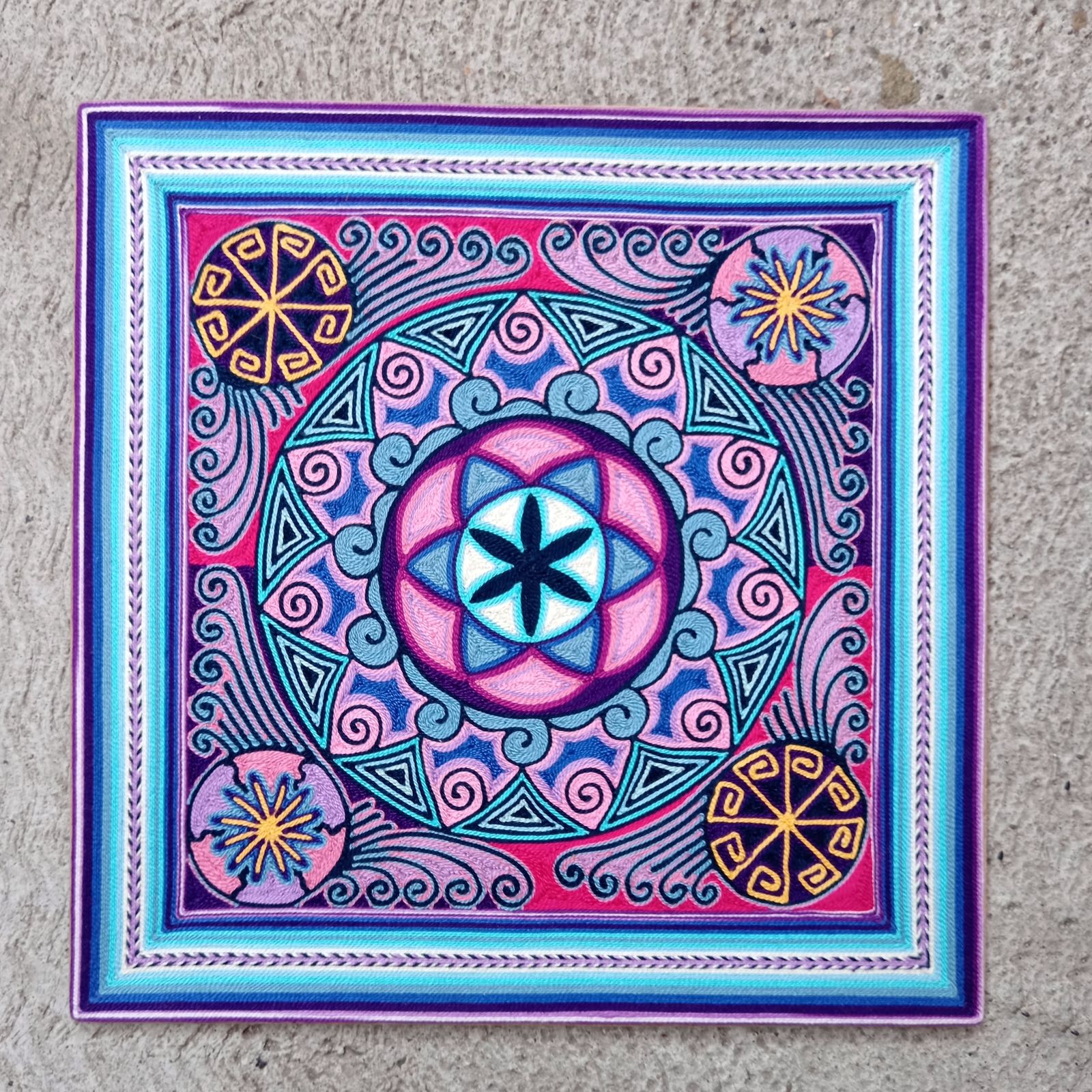 This is an extraordinary Yarn Painting that Alfredo Meraz Reyna did that measures is 12" x 12".