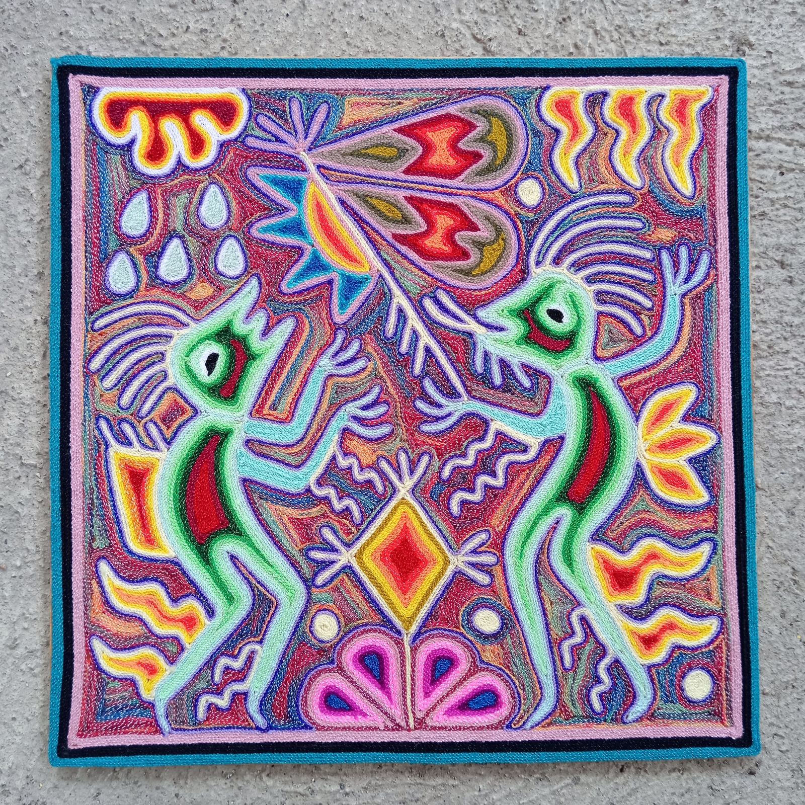 Huichol Yarn Painting Mexican Folk Art by Hilaria Chavez Carrillo PP8208