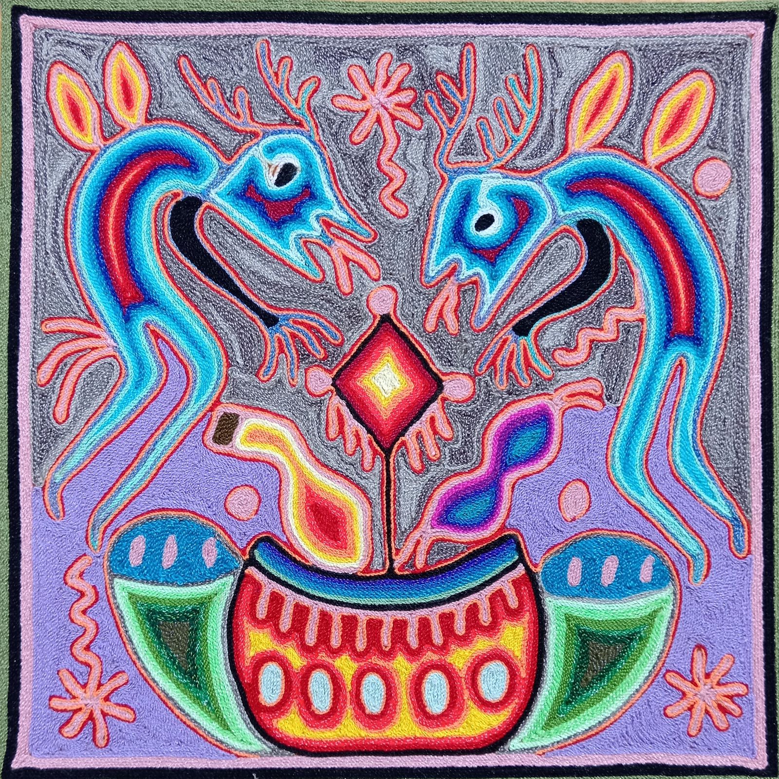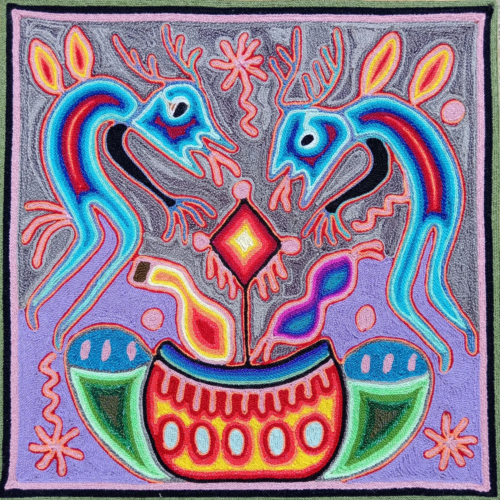 Huichol Yarn Painting Mexican Folk Art by Hilaria Chavez Carrillo PP8209