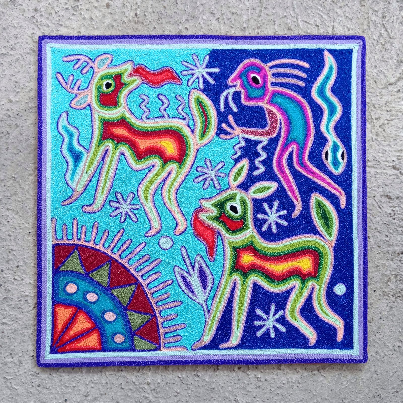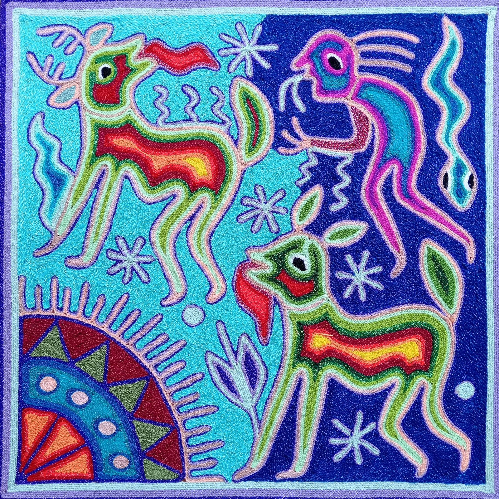 Huichol Yarn Painting Mexican Folk Art by Hilaria Chavez Carrillo PP8210