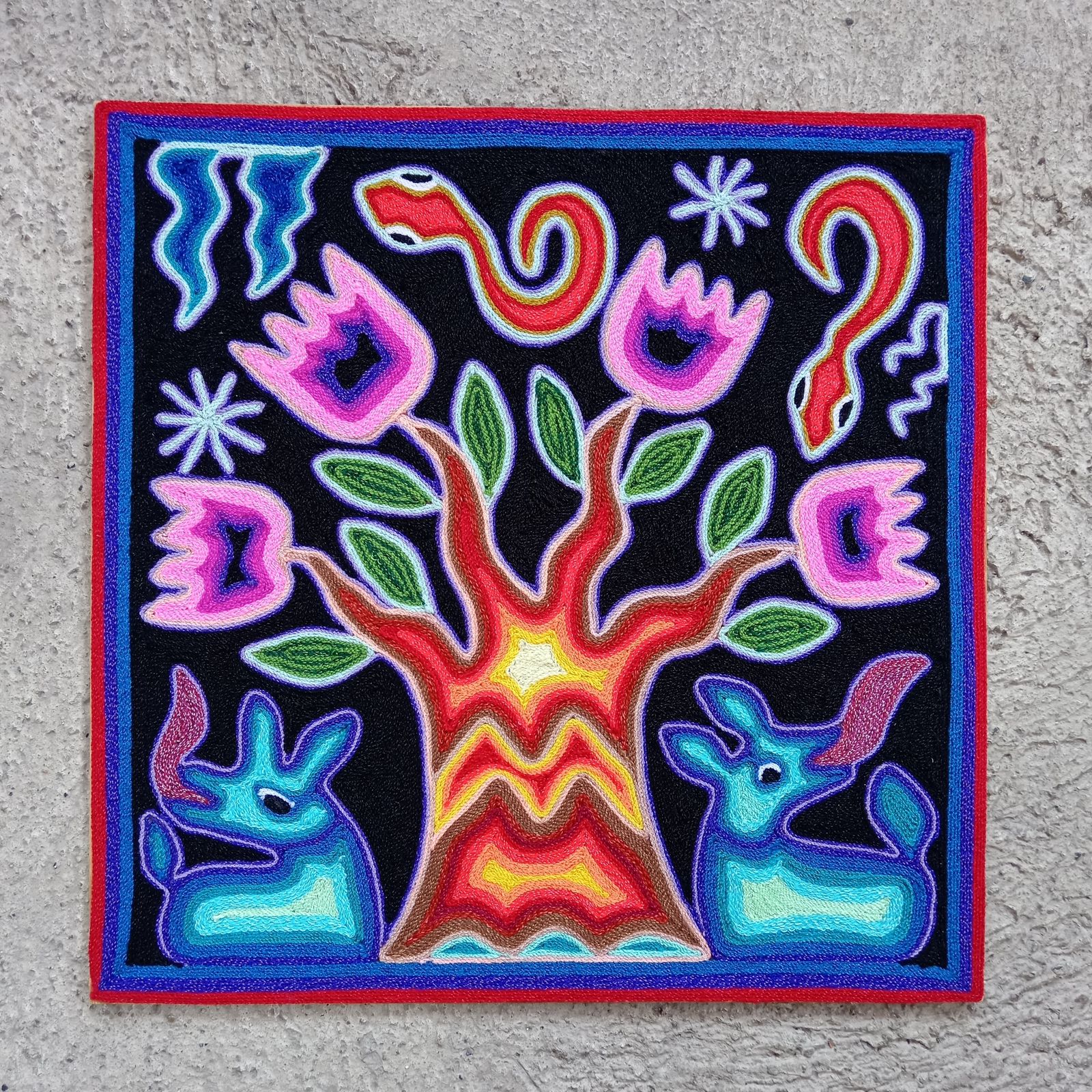 Huichol Yarn Painting Mexican Folk Art by Hilaria Chavez Carrillo PP8213
