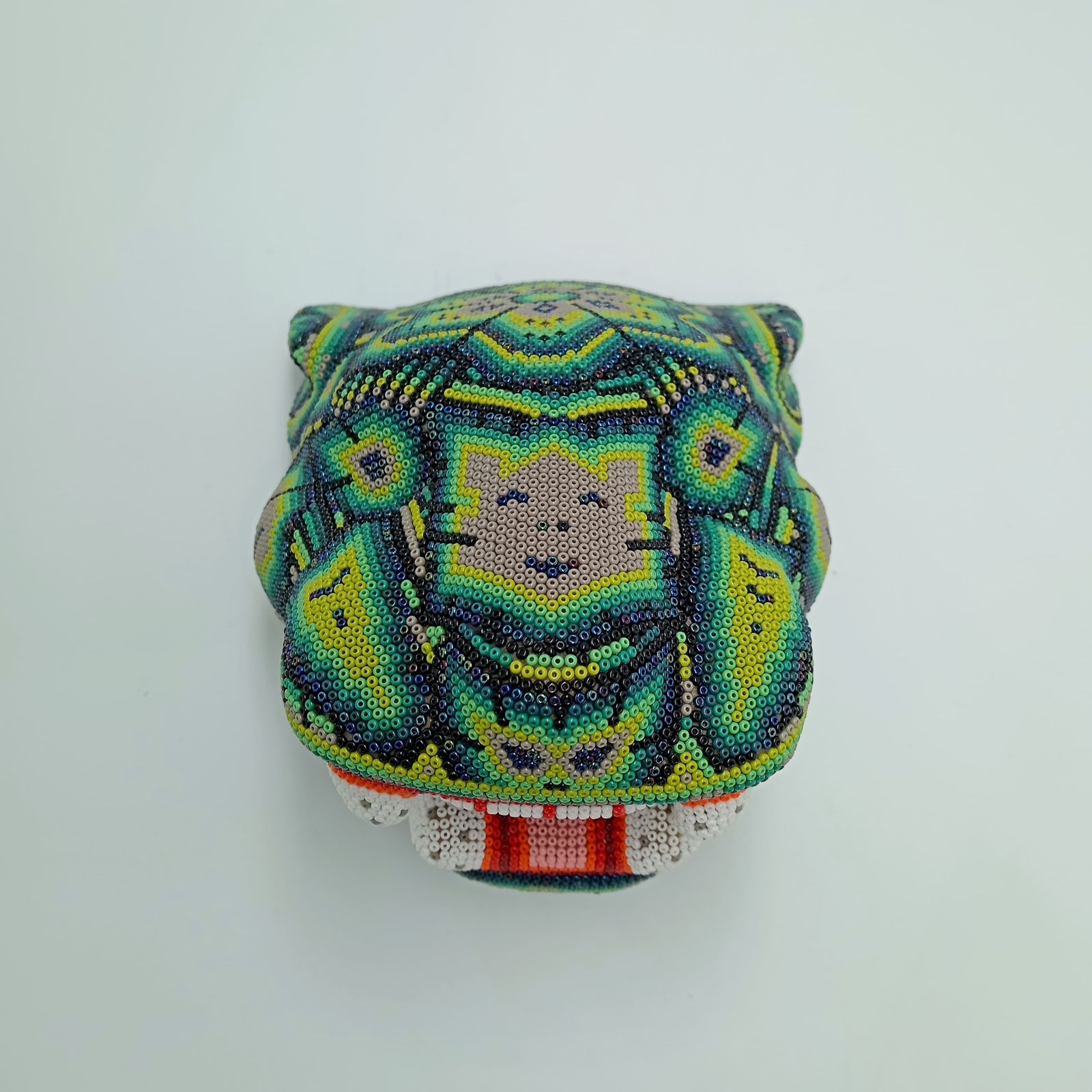 Mexican Folk Art Huichol Beaded Jaguar Head By Mayola Villa Lopez PP7482