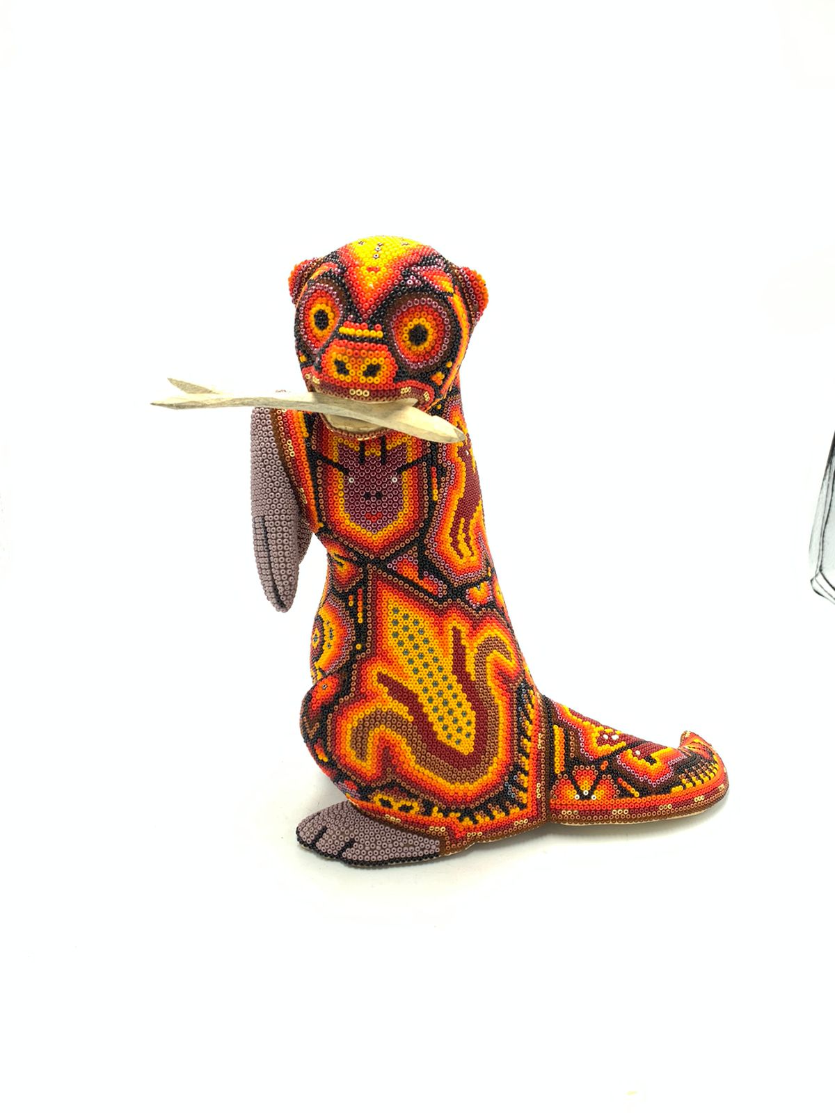 Mexican Folk Art Huichol Beaded Otter by Isandro Villa Lopez PP5757