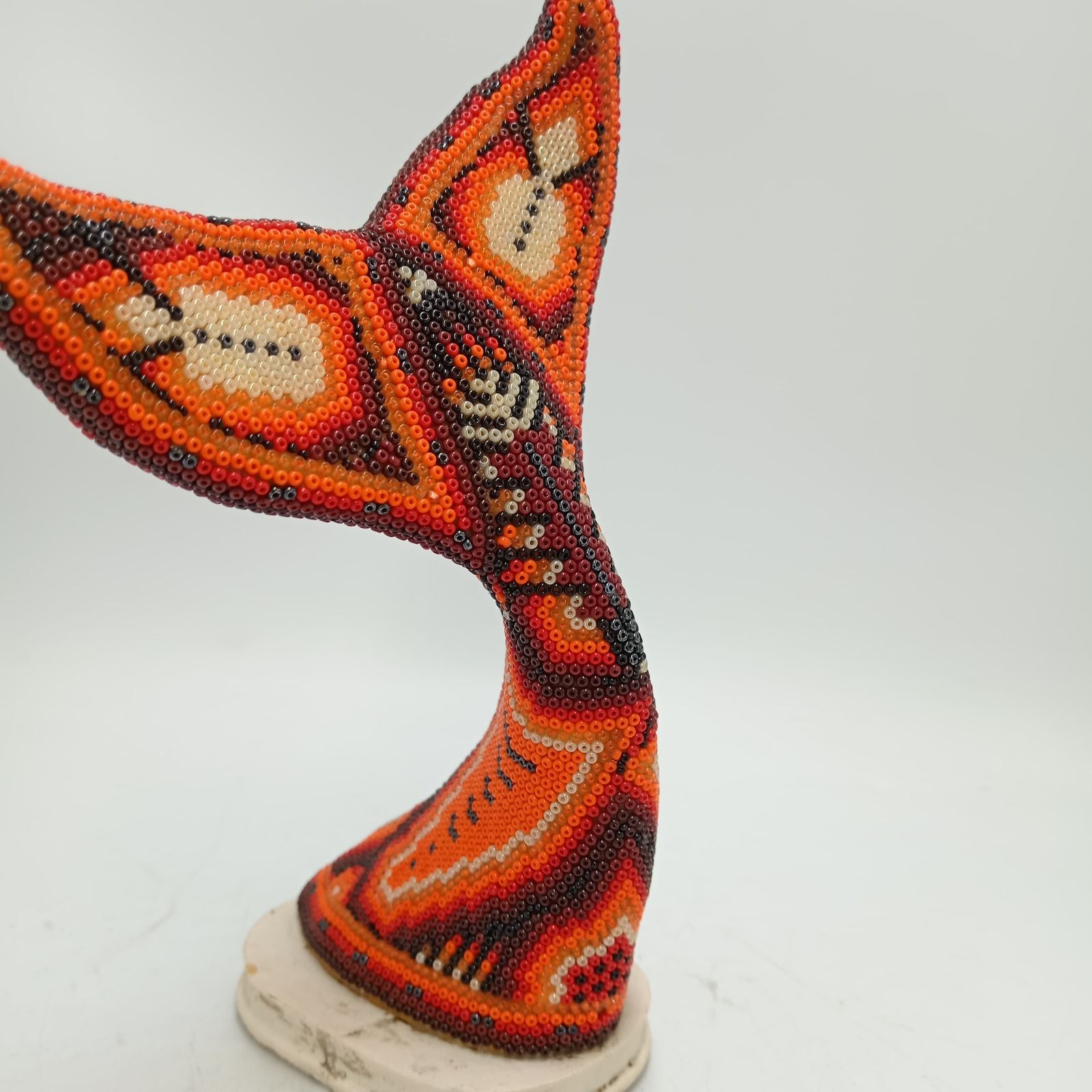 Mexican Folk Art Huichol Beaded Whale Tail By Mayola Villa Lopez PP8639