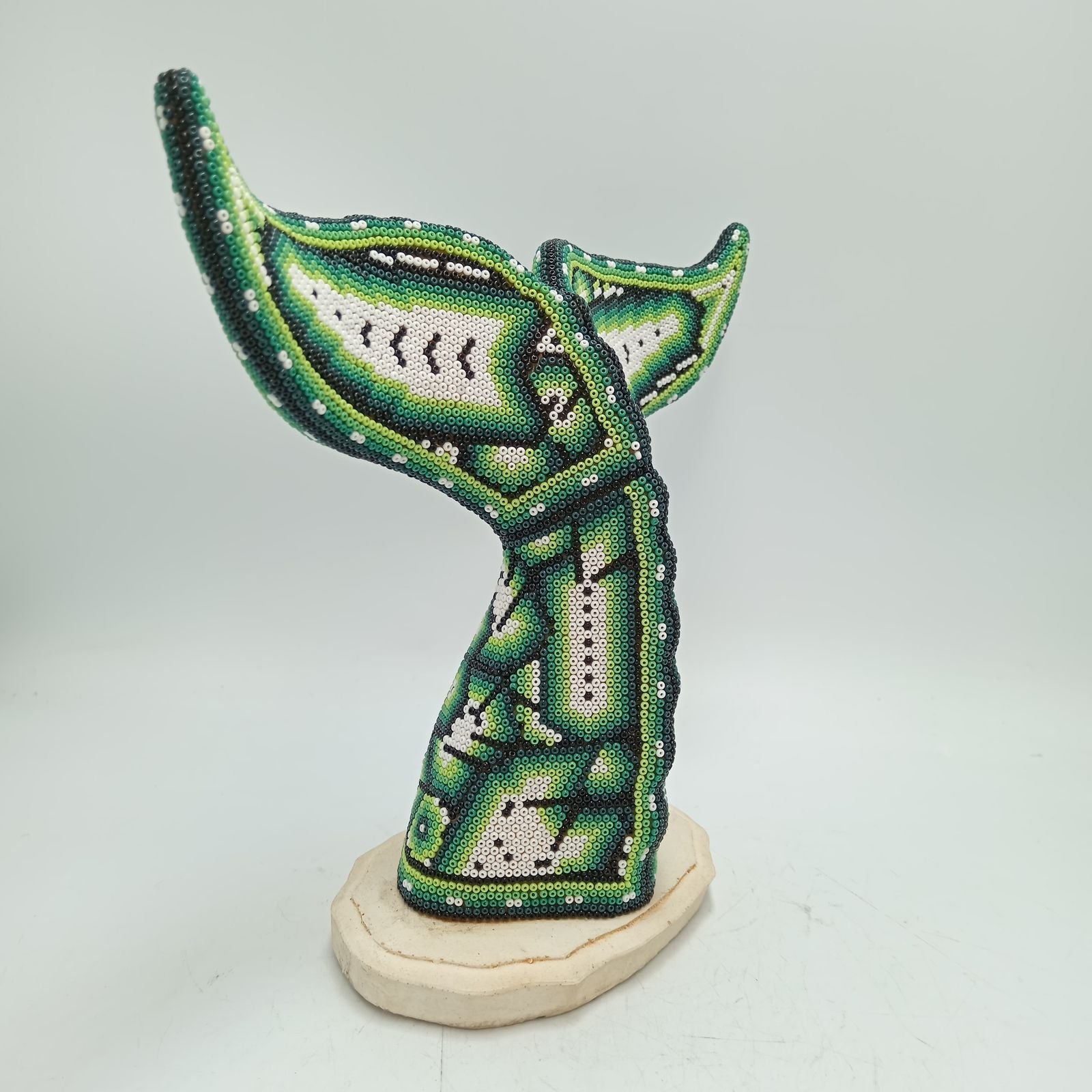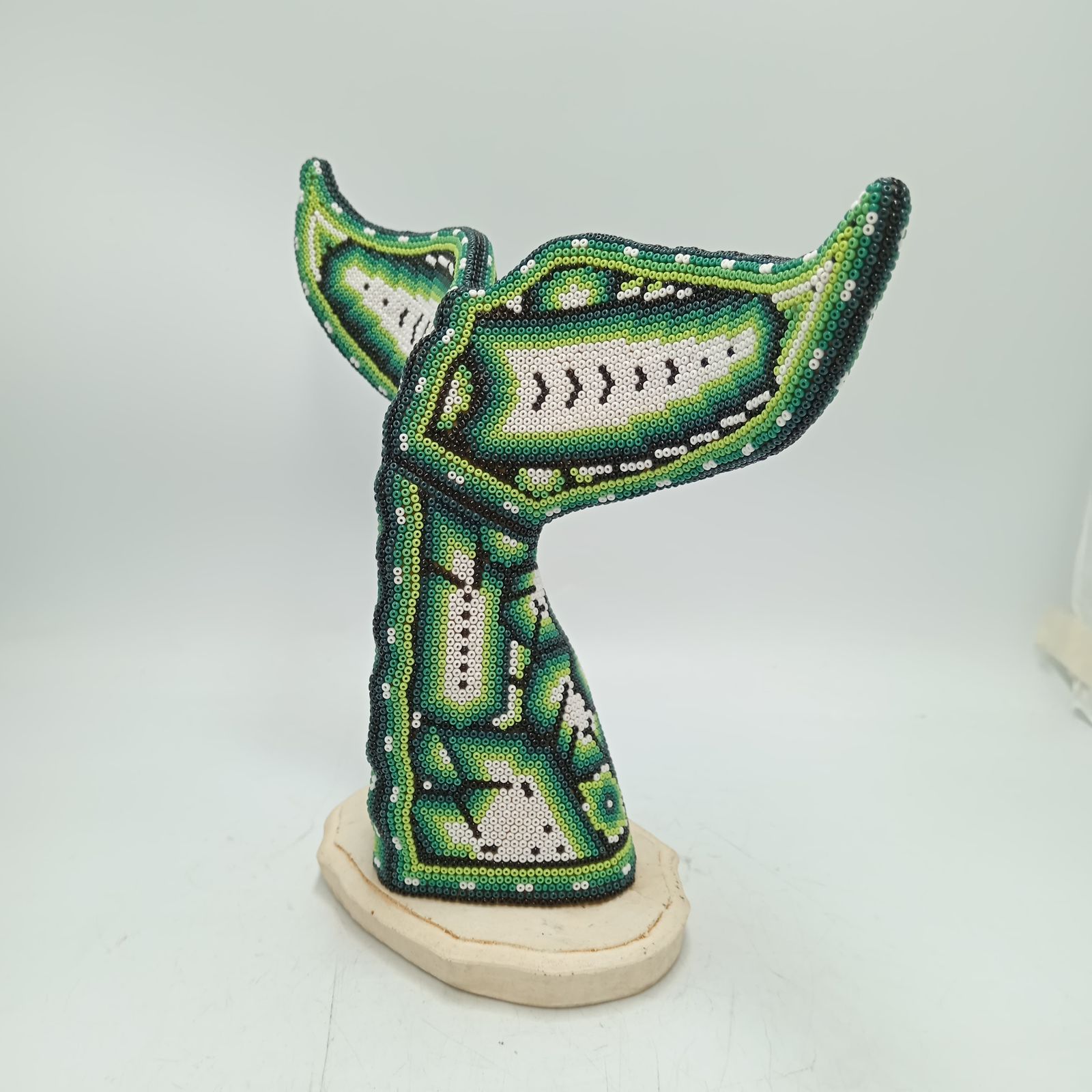 Mexican Folk Art Huichol Beaded Whale Tail By Mayola Villa Lopez PP8657