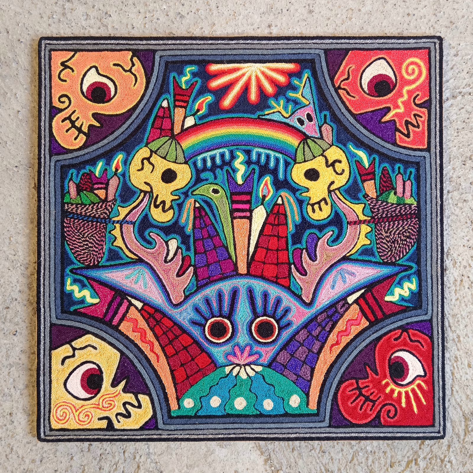 Mexican Folk Art Huichol Indian Yarn Painting by Luis Castro PP7463