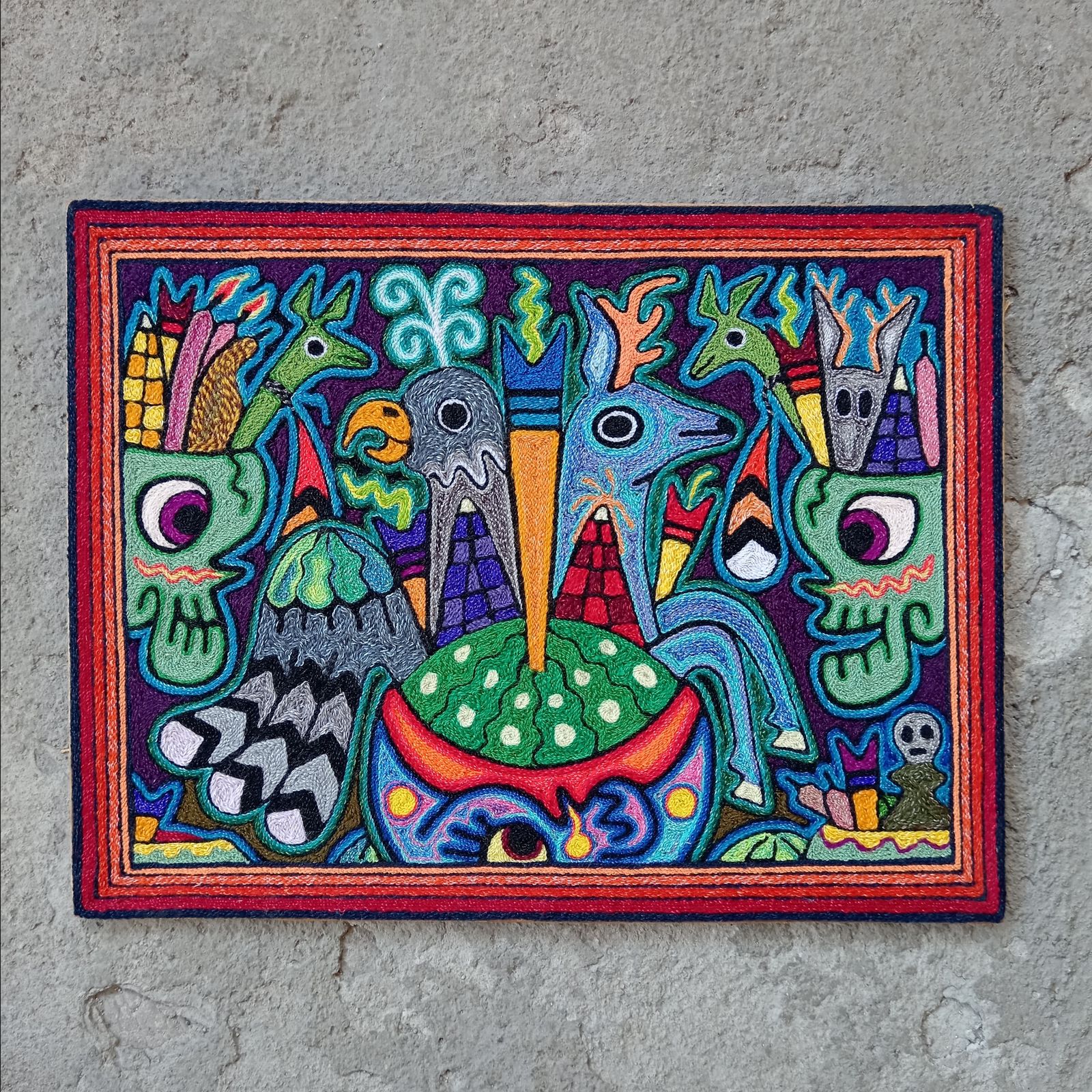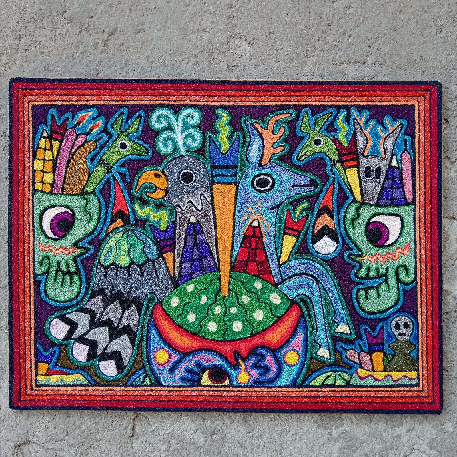 Mexican Folk Art Huichol Indian Yarn Painting by Luis Castro PP8023