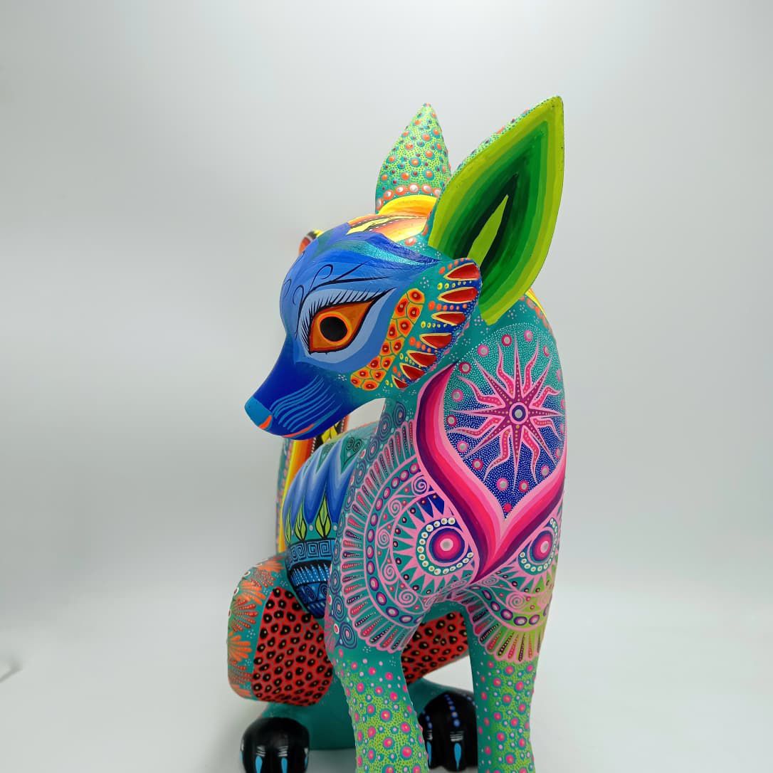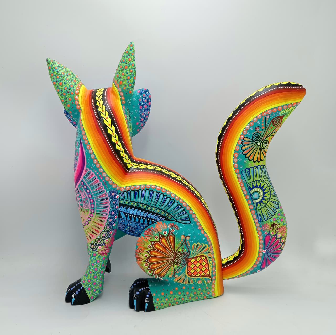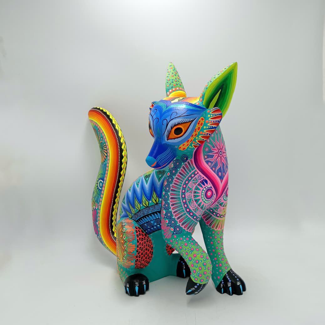 Luis Sosa comes from the town of San Martin Tilcajete, Oaxaca. This town specializes in the creation of fantastical wooden figures called alebrijes. He carves and paints all of his work, and his style has become very unique. His use of bright and vibrant colors make his artwork stand out in any decor.