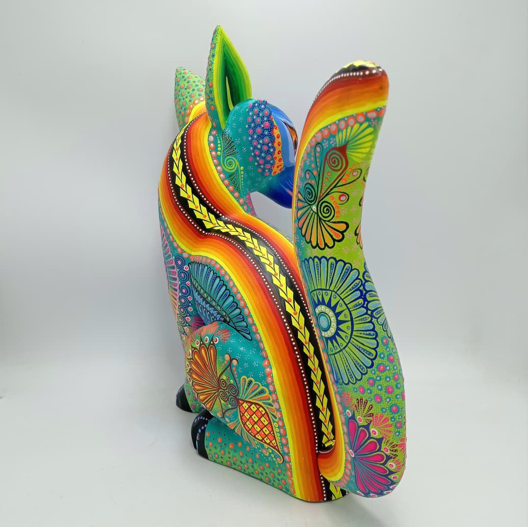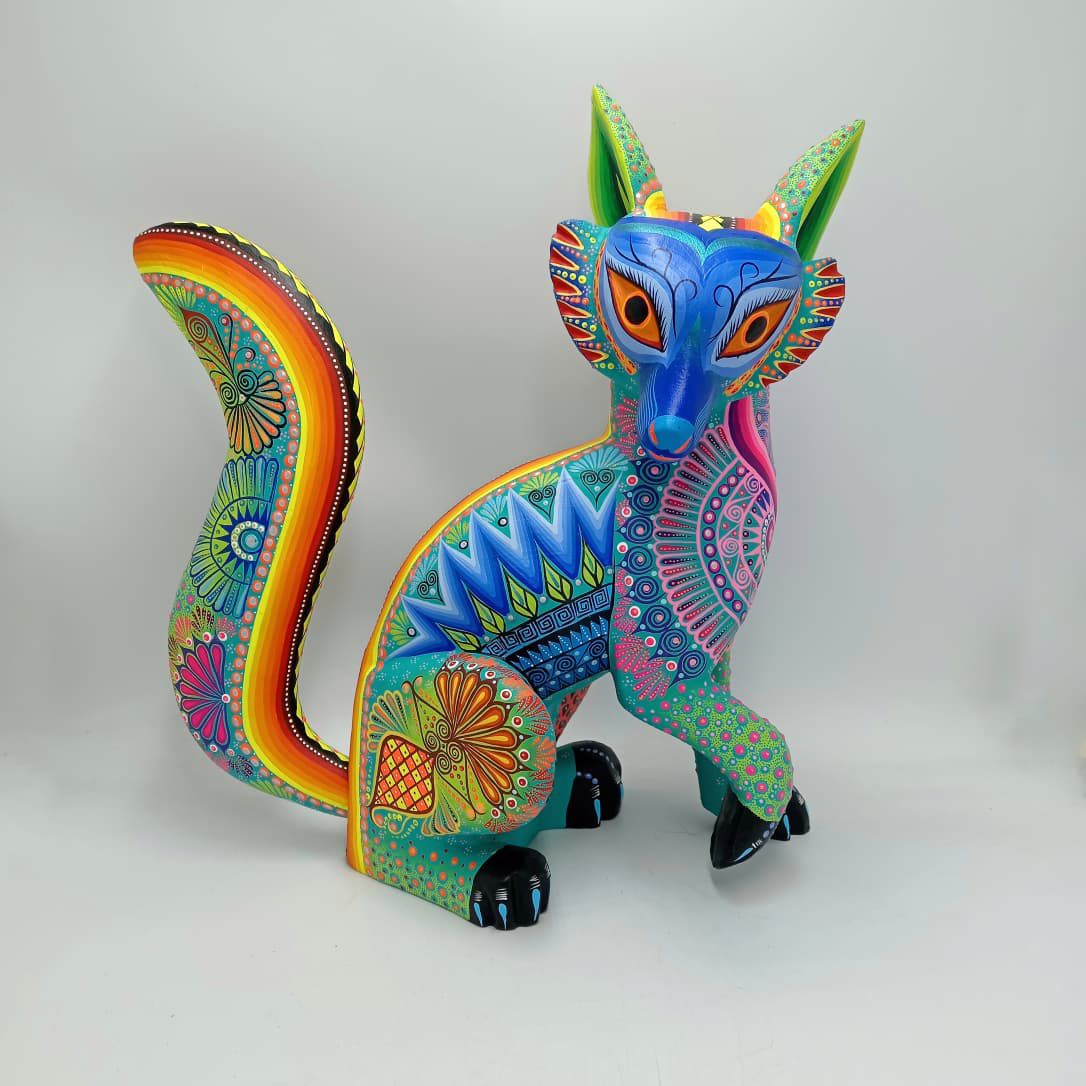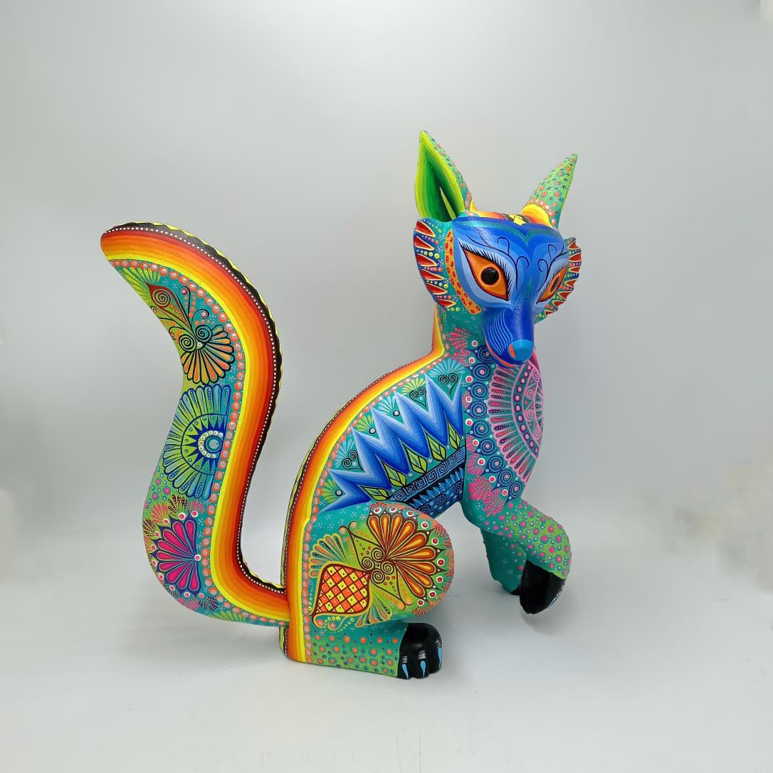 Luis Sosa comes from the town of San Martin Tilcajete, Oaxaca. This town specializes in the creation of fantastical wooden figures called alebrijes. He carves and paints all of his work, and his style has become very unique. His use of bright and vibrant colors make his artwork stand out in any decor.