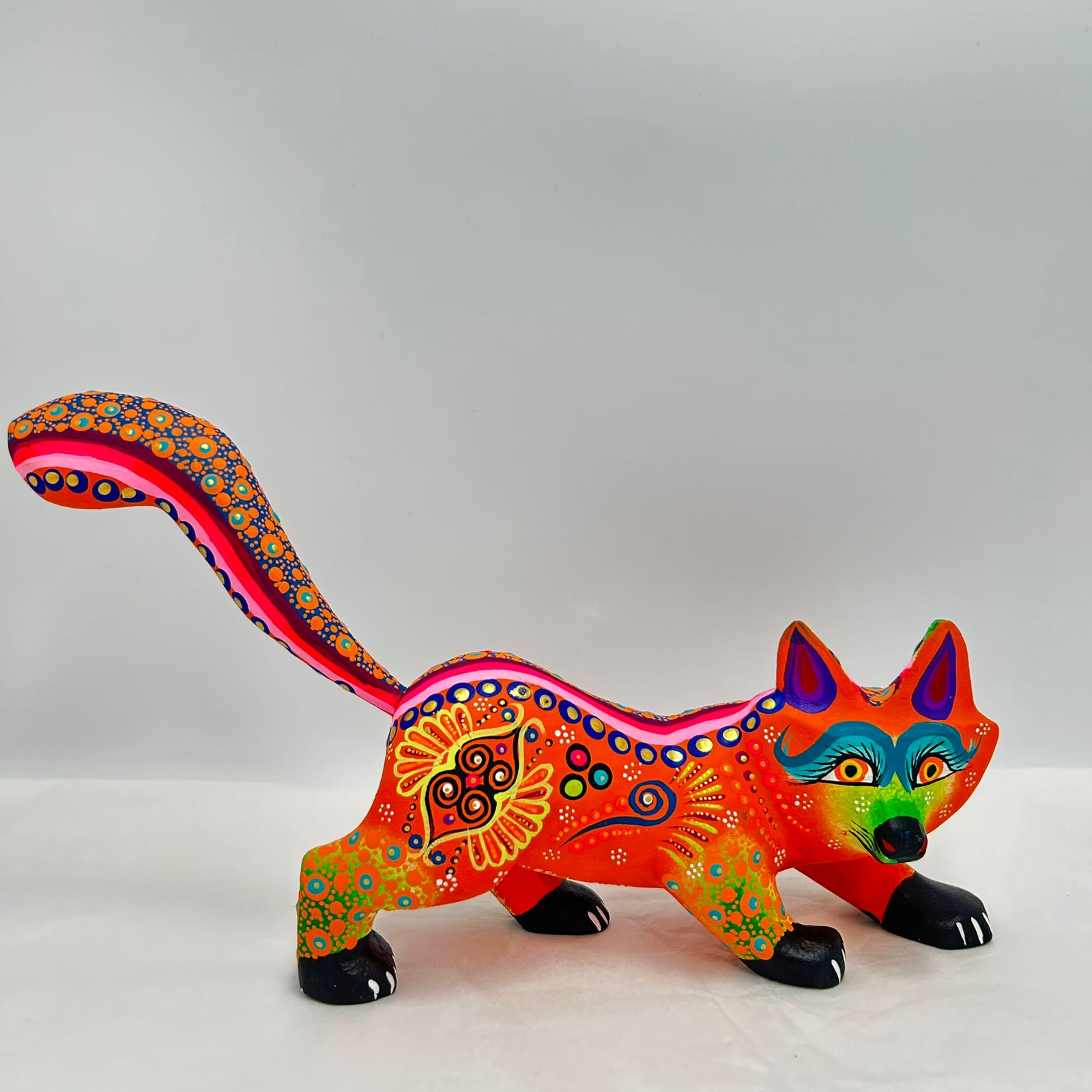 Oaxacan Wood Carving Hand Made Fox By Estudio 2403 PP7182