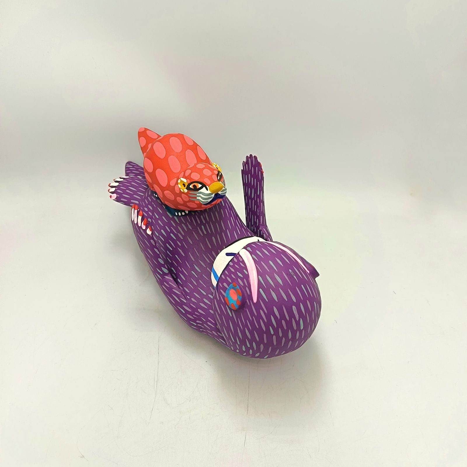Oaxacan Wood Carving Hand Made, Otter with Baby By Armando Jimenez PP8753